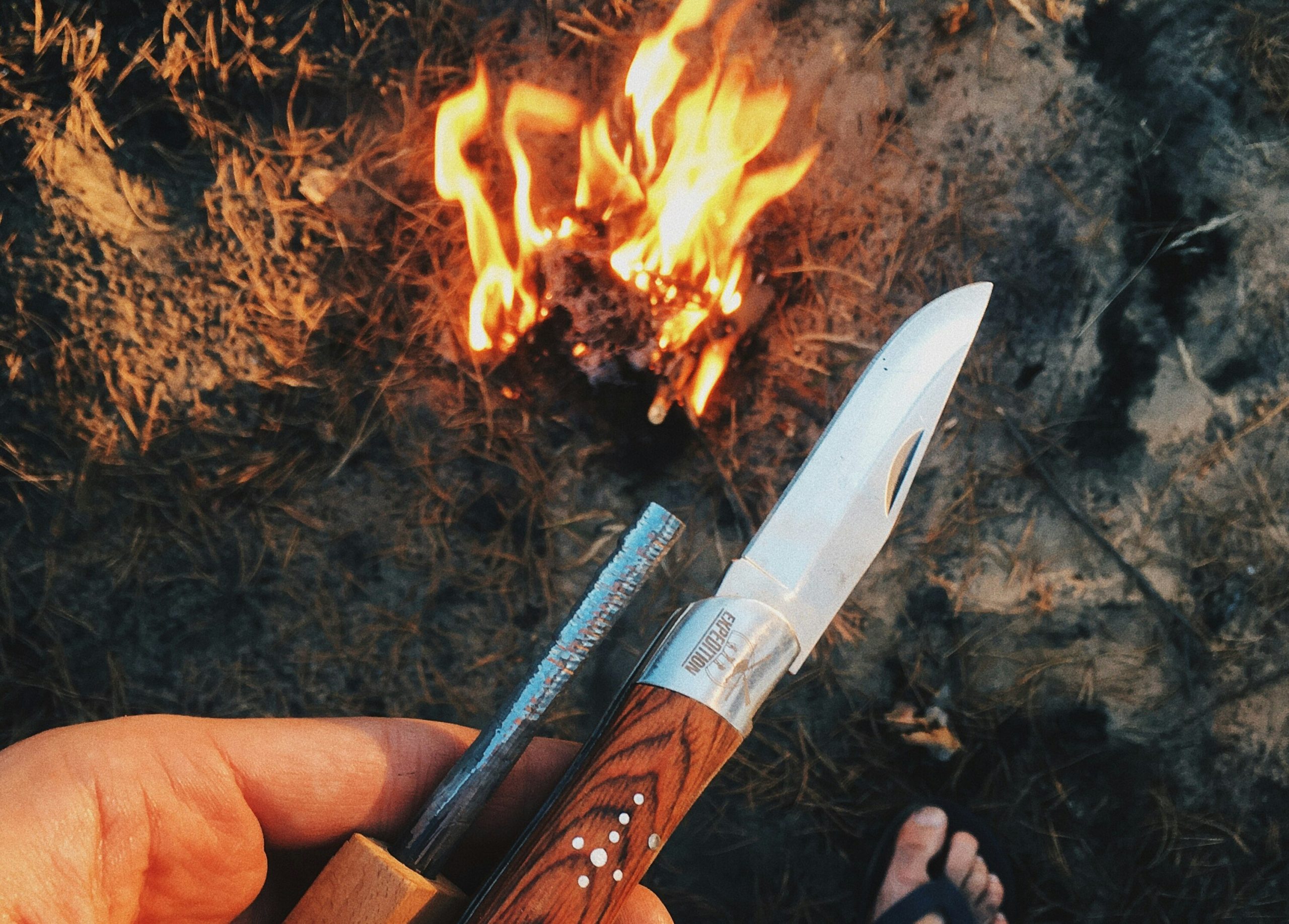 Heating a stainless knife over flame may seem like a survival trick for sterilising or bending metal, but it can permanently ruin the blade’s heat treatment. High temperatures alter the steel’s hardness and temper, making the edge brittle, soft, or unevenly warped. Once that change occurs, a stainless knife can never return to factory performance. Heat also damages handle materials, adhesives, and pins, putting the entire knife at risk. If sterilisation is needed, boiling water is safer. A stainless blade should never be used as a makeshift fire poker or exposed directly to open flame.