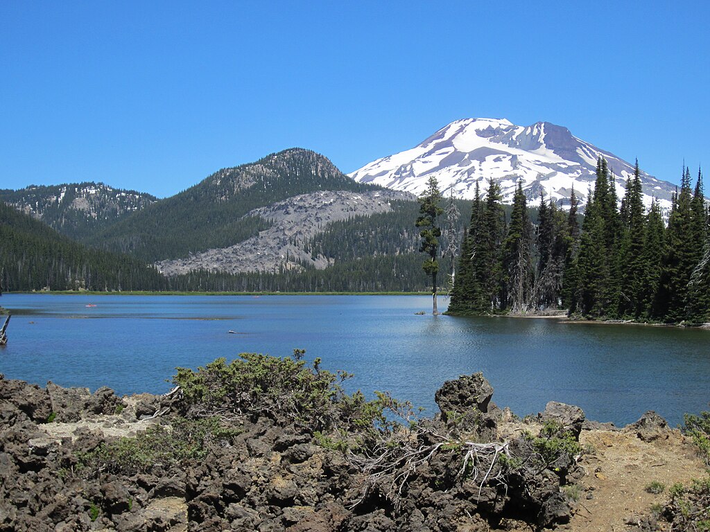 Sparks Lake sits among volcanic rock formations and offers dramatic views of South Sister and Broken Top, creating a camping experience marked by striking scenery. The brightness of sunrise across the peaks reflects on the shallow water, adding vibrant color to early mornings. Trails nearby weave through meadows filled with summer blooms, providing gentle routes for exploration. Despite its popularity, the lake’s broad shoreline keeps the atmosphere calm and unhurried.