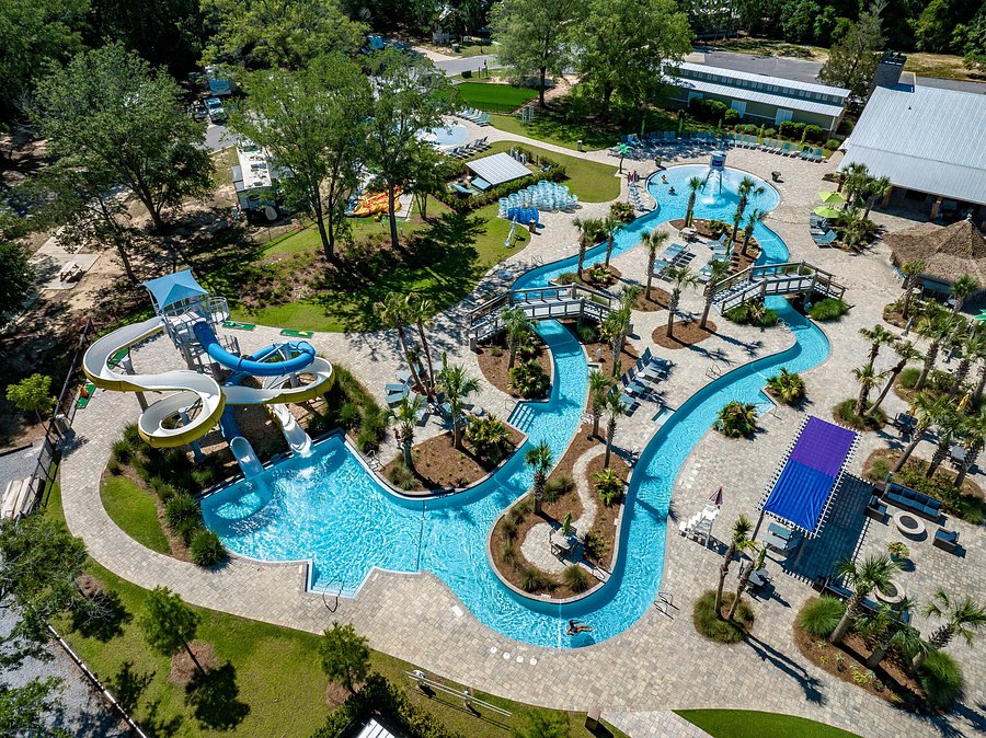 Splash RV Resort is built around a 2-acre water park, including slides, splash pads, and lazy rivers, ideal for children aged 3–12. With full-service RV hookups, heated pools, and clubhouse activities, families can enjoy extended stays. Ratings show that over 85% of guests report “excellent” entertainment for kids. Additional amenities include planned arts and crafts sessions, movie nights, and family-friendly game areas. The resort emphasizes safety with lifeguard coverage, fenced play areas, and monitored water activities.