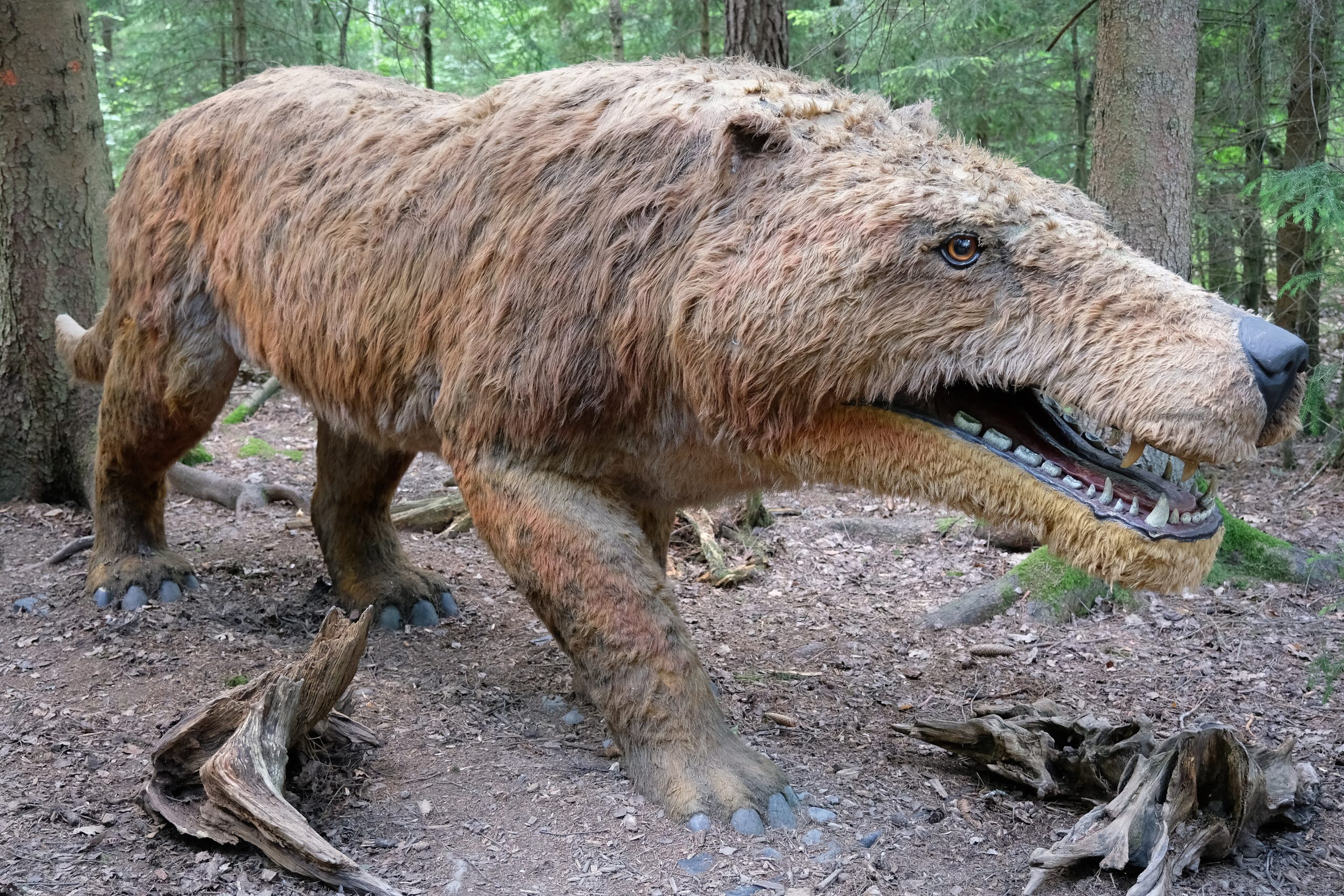Arctodus simus, often called the short-faced bear, was one of the largest land carnivores that lived during the Ice Age. This massive bear inhabited parts of North America and could stand extremely tall when upright. Its long legs suggest it was capable of traveling long distances while searching for food. Scientists debate whether it primarily hunted prey or relied heavily on scavenging from other predators. Either way, its size and strength made it a dominant presence within ancient ecosystems. Like many large Ice Age animals, it disappeared near the end of the last glacial period.