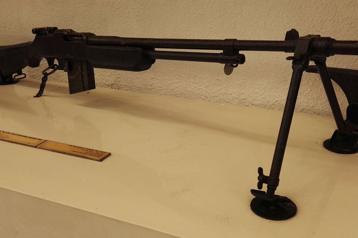 The Browning Automatic Rifle served as a bridge between rifles and machine guns. Chambered in .30-06, it delivered powerful automatic fire while remaining portable. Soldiers used it to advance under fire and hold defensive positions. Its solid construction handled sustained use without failure. Though heavy, it offered reliability that few modern light machine guns can match. The BAR’s long barrel, bipod, and wooden stock give it a commanding appearance. It remains a symbol of dependable firepower carried directly into battle by infantry troops.