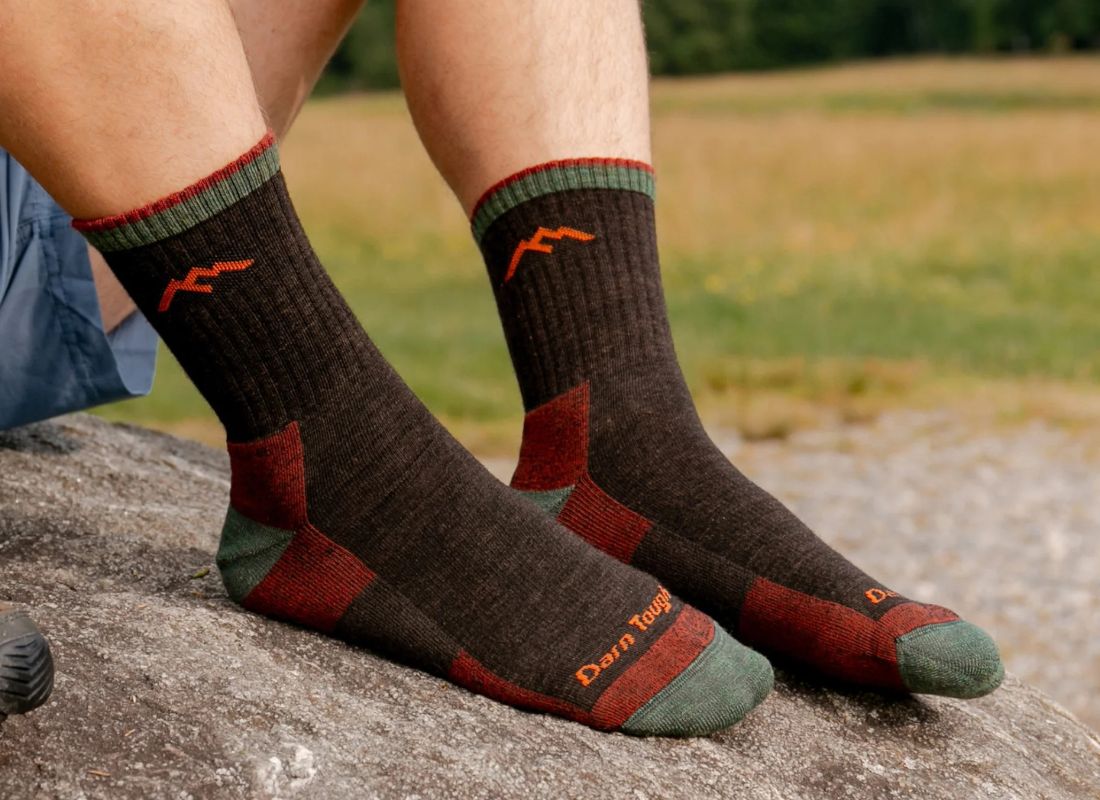 Darn Tough is legendary for durability, and the Hiker Micro Crew Cushion proves why. Built with a merino wool blend, these socks regulate temperature, wick moisture, and resist odor, keeping feet comfortable on long hikes. Mid-level cushioning provides balance between softness and responsiveness, while the seamless construction prevents irritation. Testers found the snug fit stayed in place even on steep climbs. Backed by a lifetime guarantee, they’re a reliable option for hikers who want performance and peace of mind.