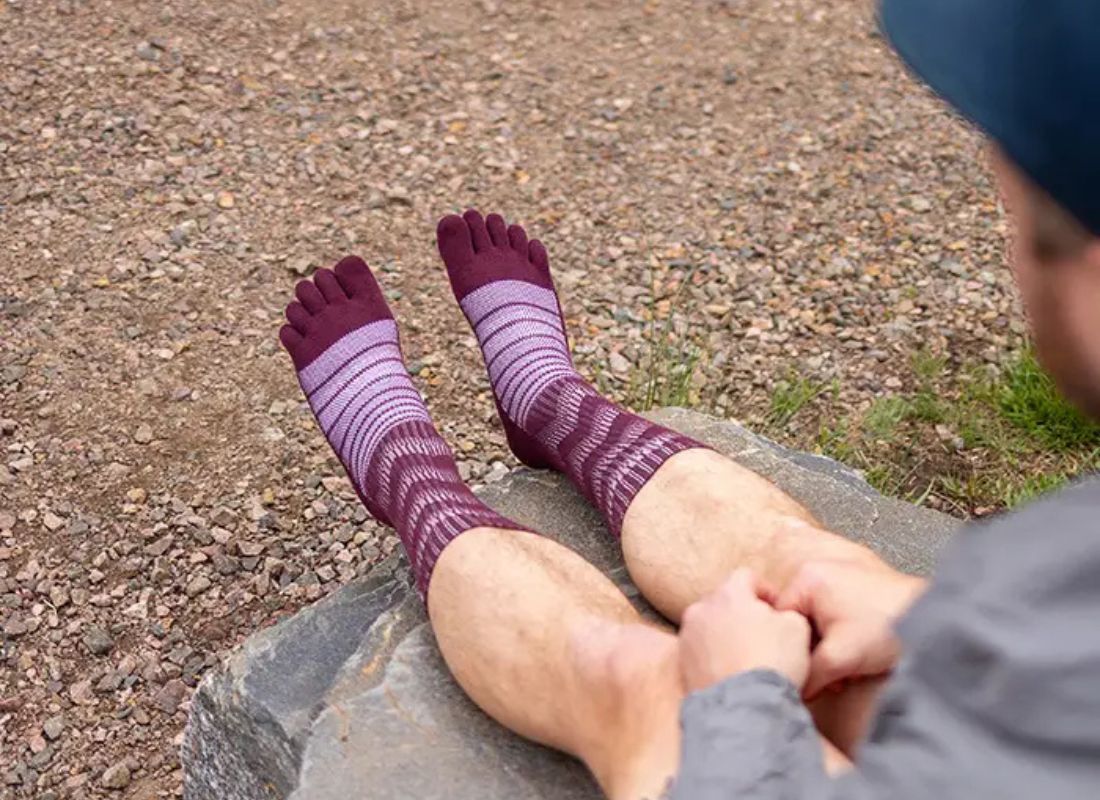 Injinji’s Outdoor Midweight Crew offers a unique design that separates each toe, reducing friction and preventing blisters. Made with a merino wool blend, these socks combine breathability, odor control, and moisture-wicking performance. Testers appreciated the midweight cushioning, which offered reliable comfort on longer treks without feeling heavy. The snug cuff held the sock securely in place, even on multi-day hikes. Toe socks may feel unusual at first, but many hikers found they significantly improved foot health and overall comfort.