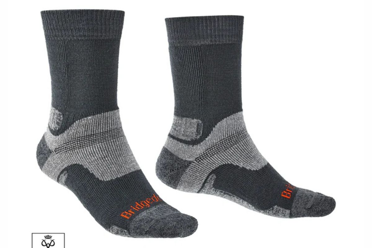 Bridgedale’s Hike Midweight Performance Socks are designed for rugged use, with a merino wool blend that balances warmth and breathability. Zoned cushioning provides protection in key areas, while the snug fit prevents slipping or bunching. Testers appreciated how well they held up under heavy packs and uneven terrain. The socks offered consistent comfort over long distances without wearing thin. Built to withstand demanding conditions, they’re ideal for hikers who prioritize reliability and durability on challenging multi-day or mountainous trails.