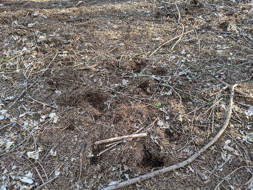 Beds used by mature bucks are chosen carefully. These beds often provide wind advantage, visual cover, or elevation. The depression is larger and more defined, showing body size. Escape routes are usually nearby, allowing quick exits if disturbed. Mature bucks often bed alone rather than in groups. Hair found in the bed may appear coarse and dark. Repeated use under similar wind conditions shows routine. When bedding areas consistently show large tracks and nearby rubs, it suggests the buck feels secure and considers the area part of his core range rather than a temporary stop.