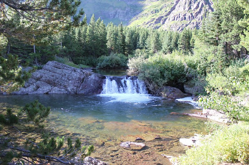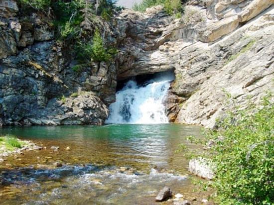 Also known as “Trick Falls,” Running Eagle Falls near Two Medicine offers a 0.6-mile round trip hike, making it highly accessible. During spring runoff, water spills over the top, while in drier seasons, the flow emerges from a cave halfway up the cliff. Geological studies by Montana State University highlight it as a rare karst spring system within Glacier.