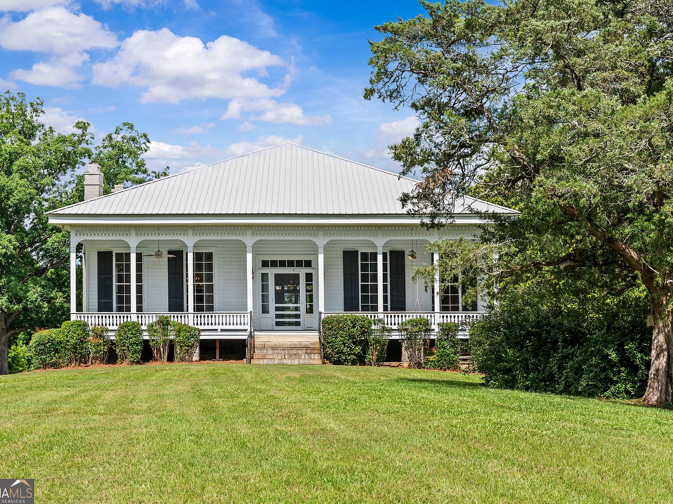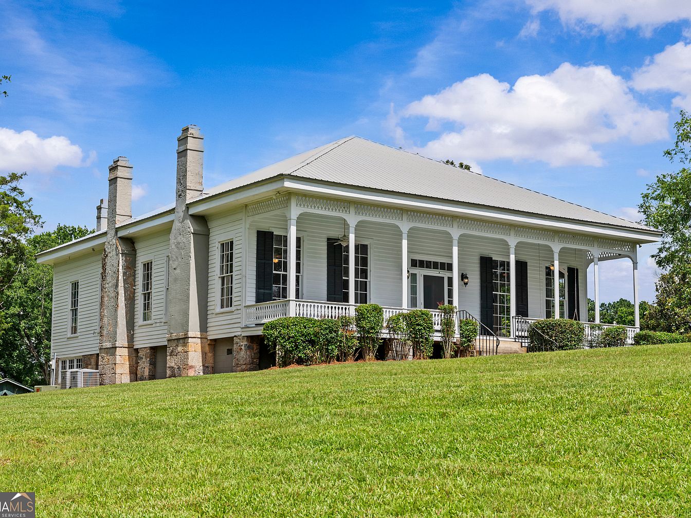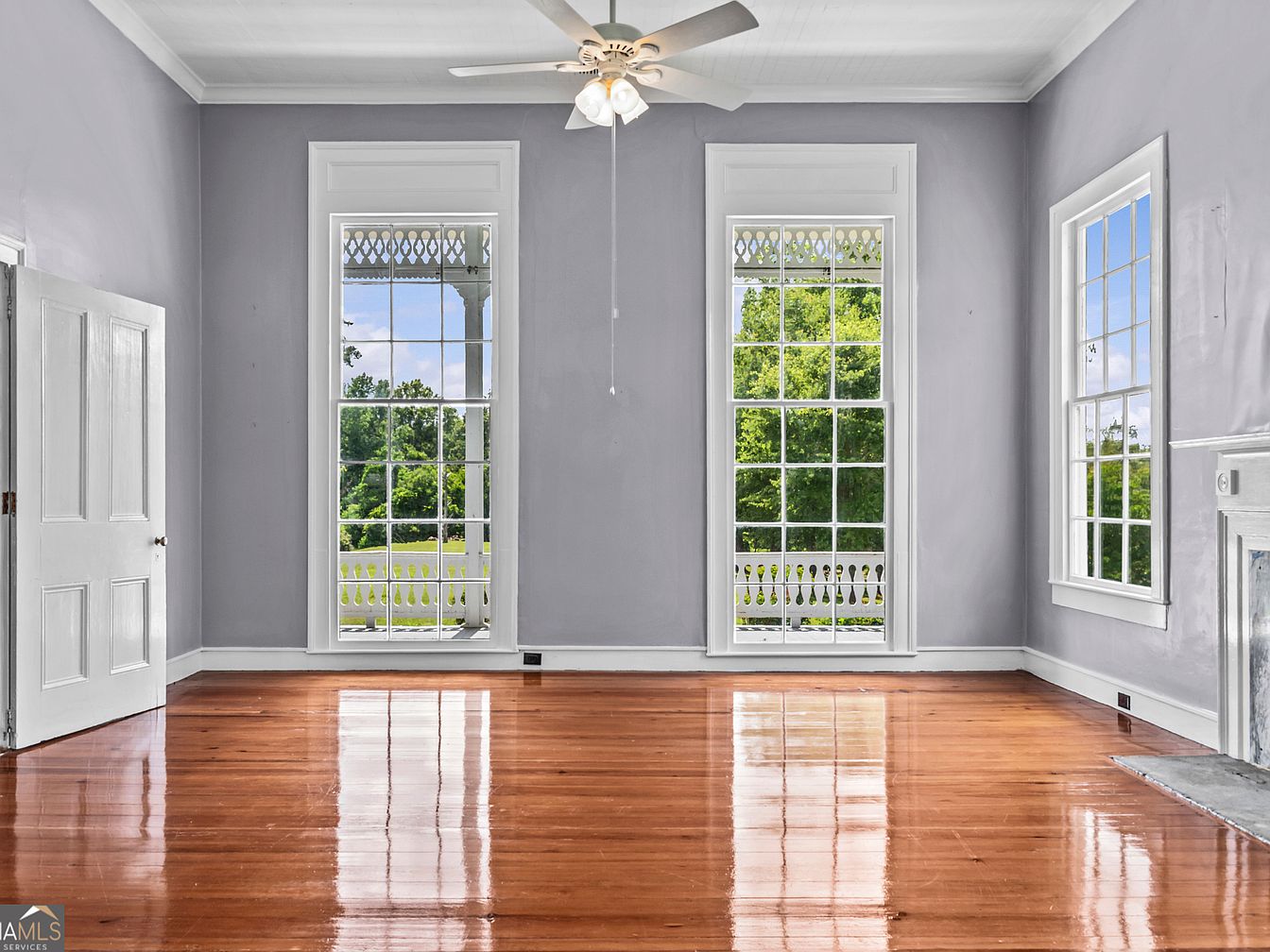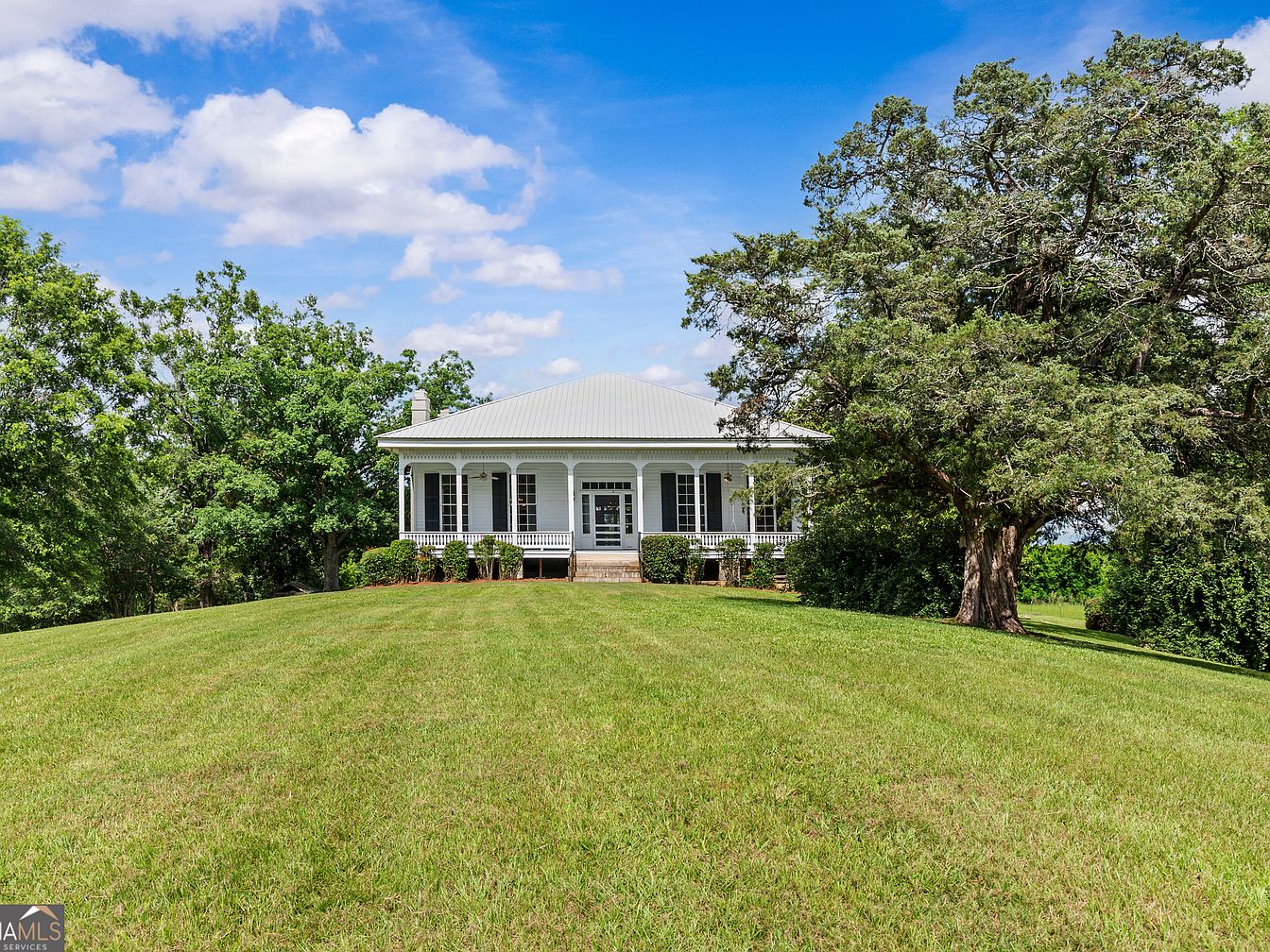 This stunning 1900 center-hall farmhouse in Gray, GA, encapsulates the historical significance and classic charm of southern rural life, set on over 120 acres of pristine rolling pastures and woodlands. Featuring architectural details like wide front and back porches, towering ceilings, and two historic-style fireplaces, the home harmoniously blends original features—such as richly patterned wallpaper and light-filled rooms—with modern updates, including a new roof. The spacious kitchen with ample cabinetry opens to the back porch through nostalgic swinging screen doors, while the main floor includes all bedrooms and two baths. With a price of $1,492,500, outbuildings for farming, and scenic daffodil-studded lawns, this unique property offers unparalleled potential as a private estate or working farm.