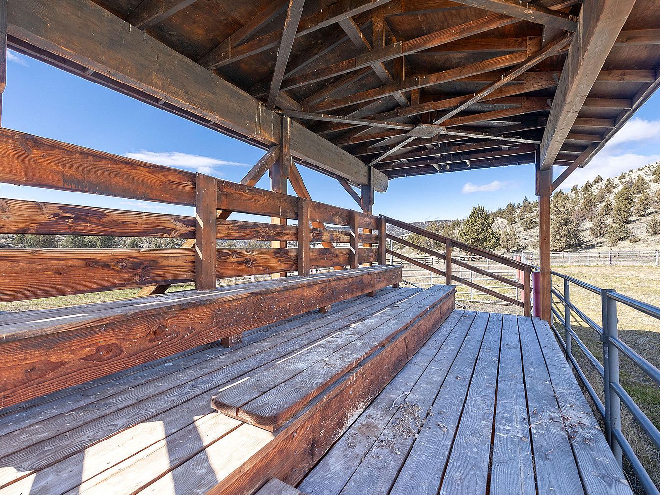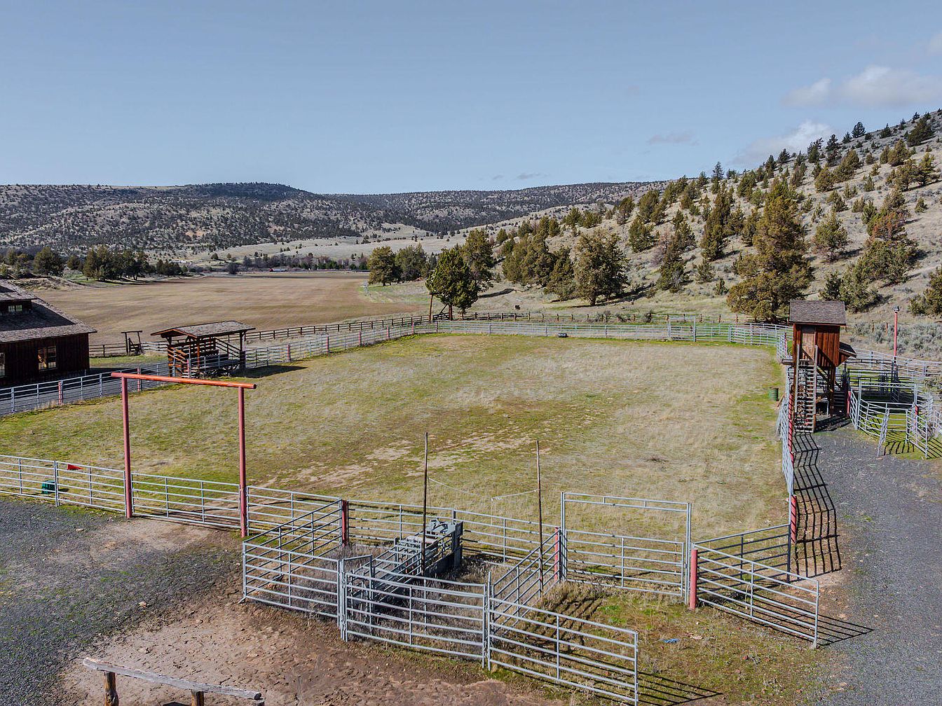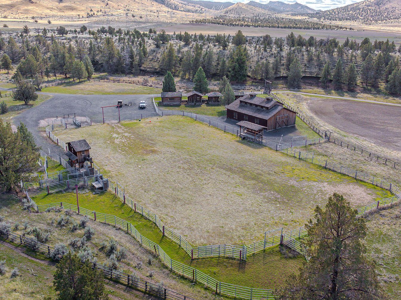 This historical log cabin in Madras, OR, is part of a vast ranch encompassing 66,000 acres, indicating its significant role in local agriculture. Built with rustic charm, it showcases Western architecture typical of the late 19th to early 20th century. Recently renovated, the owner’s home features a gourmet kitchen and four spacious suites. Current listing price stands at $54,580,000, reflecting the property’s commercial success as a cattle operation. With expansive grazing lands, the ranch supports 1,200-1,500 mother cows, ensuring sustainability. The total square footage is not specified, but amenities include multiple residences, remote hunting cabins, a dance hall, a church, and a rodeo arena, providing a unique, multifaceted lifestyle in a stunning landscape.