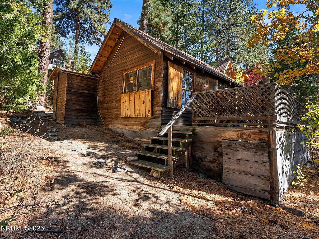 This historic Marla Bay property in Zephyr Cove, NV, features two authentic 1920s cabins epitomizing classic Lake Tahoe rustic architecture, officially recognized as separate dwelling units by Douglas County. Set within one of Lake Tahoe’s most exclusive lakefront communities, these well-preserved century homes offer stunning lake views, a lake-view and private rear deck, and direct proximity to the Beach Drive boat ramp. With a current listing price of $1,850,000, the property boasts unparalleled access to pristine beaches, seasonal boat moorings, and recreational amenities, while being just minutes from shopping, ski lifts, and entertainment. The generous wooded lot is nestled among 98 single-family residences, exuding a serene, timeless charm and awaiting a visionary restoration to realize its full legacy potential.