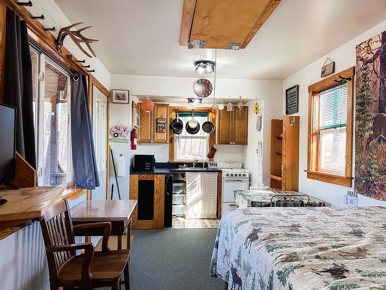 Nestled by the Smith Mountain Lake Dam, this cottage-style cabin at 507 Faith Cove Dr. embodies a serene retreat on 10 acres, ideal for outdoor lovers. While the specific year built isn’t detailed, its architectural charm reflects traditional elements, with a cozy porch adorned by a sunburst design. Fully furnished, it features a flexible layout with one bedroom and a loft, appealing to those seeking comfort and versatility. Recent renovations include modern amenities like a compact kitchen and additional sleeping quarters in a partially finished building. Listed at $159,900, the property boasts ample storage and outdoor facilities, including a kennel and community access to lakes, enhancing its appeal for recreational activities.