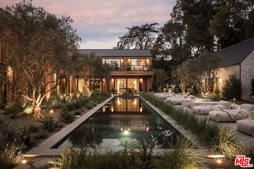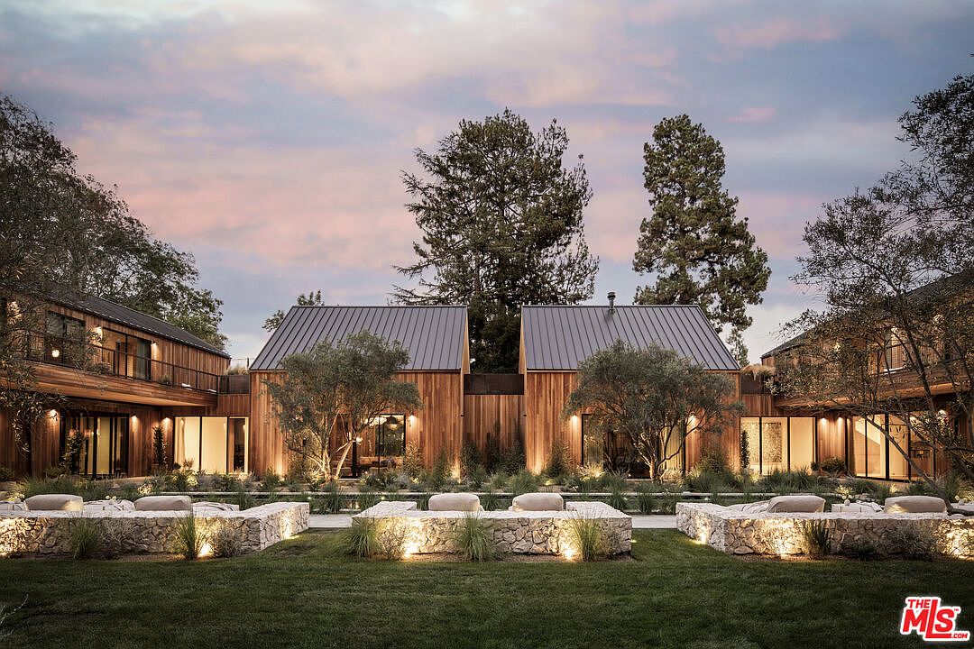 Nestled in Studio City, CA, this contemporary estate embodies California living with its Swedish countryside inspiration. Recently designed by Studio Rob Diaz, the property features an innovative architectural style with striking A-frame volumes clad in wire-brushed cedar. Built on a sprawling 1.4 acres, the estate includes seven bedroom suites and eleven baths spread across expansive spaces, flaunting 30-foot ceilings. The luxurious amenities encompass a resort-style pool, limestone pavilions for wellness and fitness, and outdoor entertainment areas. Listed at $34,950,000, this estate is a masterpiece of modern design amidst nature’s beauty, ensuring both privacy and a true connection to the serene landscape.