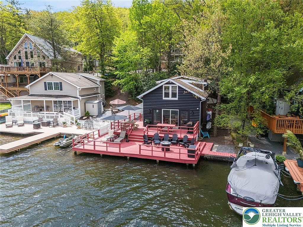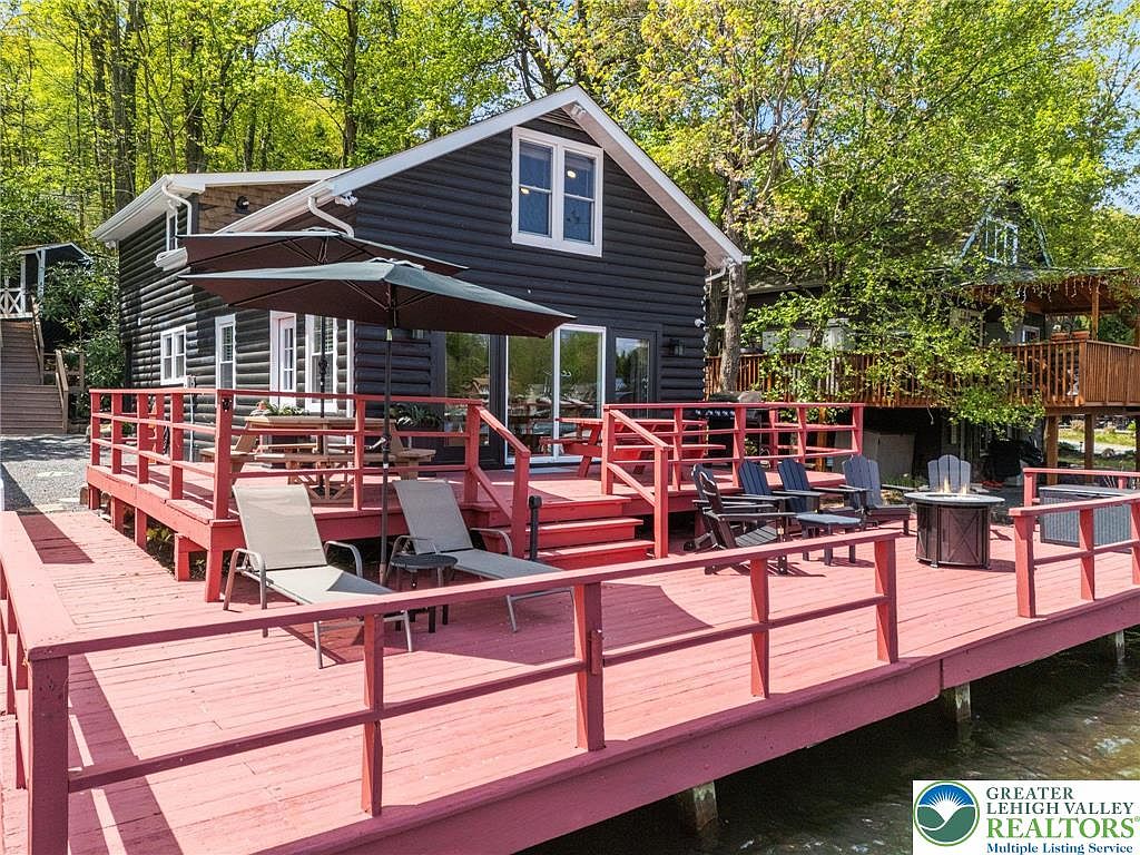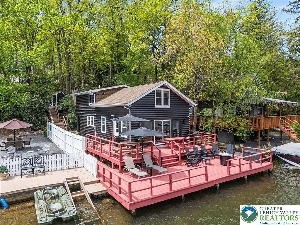 This stunning lakefront home, located at 36 South Lake Drive in Lake Harmony, PA, captures the essence of rustic yet modern living. Built as a century-old retreat, it has undergone extensive renovations to blend traditional charm with contemporary amenities. Comprising 5 bedrooms and 2 baths, the spacious interior accommodates up to 16 guests. Notable features include a modern kitchen, central air, and lakeside deck access. The property boasts a generous plot area and 1,100+ sq. ft. of living space, complemented by ample off-street parking. Currently listed at $1,795,000, it includes furniture and appliances, making it a perfect family getaway or rental investment.
