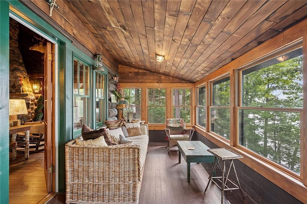 Nestled in Hayward, WI, Spider Lake Lodge is a historic gem built in 1923, now listed on the National Register of Historic Places. This log cabin-style masterpiece underwent significant renovations starting in 2018, enhancing its structural integrity, adding a new roof, and upgrading mechanical systems while preserving its vintage charm. It boasts 9 guest rooms, 11 bathrooms, and 8 fireplaces, set on a plot that shares access to beautiful sandy beaches via the Moody’s Association. The property includes a detached 1,260 sq ft garage with a guest suite, perfect for rentals. Priced at $1,695,000, this versatile property combines historic allure with modern comforts across a generous total square footage.