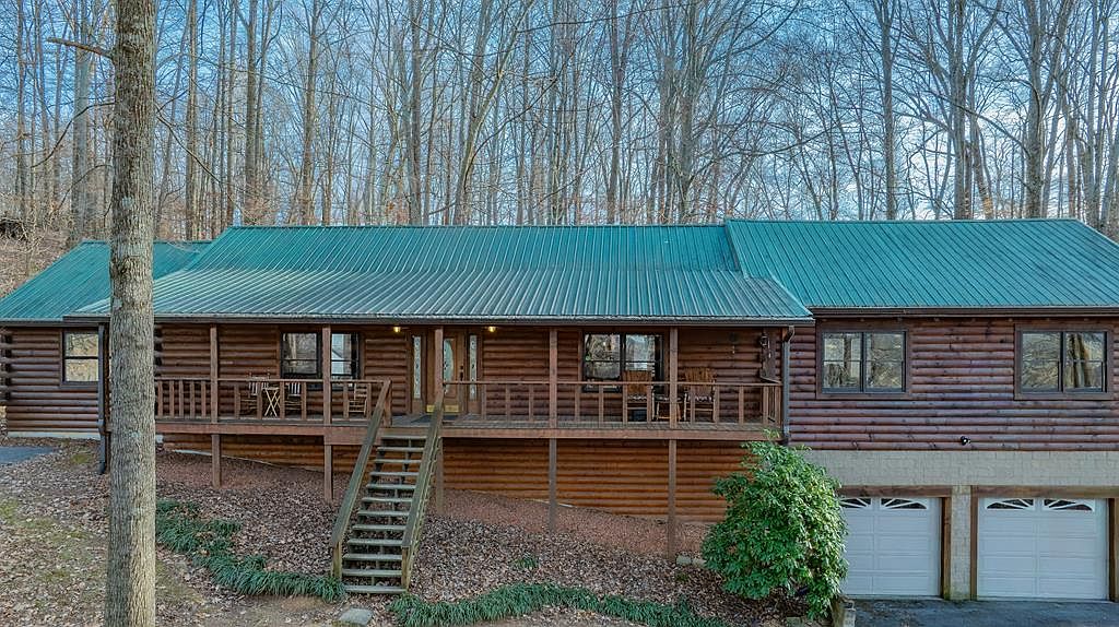 Serene 1996 Luxury Log Cabin Estate in Bristol, Virginia, Set on 11 Acres with Equestrian Amenities and a Picturesque Pond