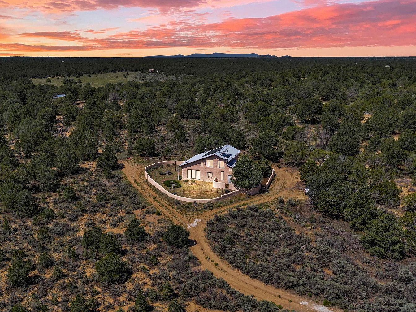 Stunning Territorial-Style Cabin on 20 Private Acres with Mountain Views, Expansive Courtyard & Forest Trails