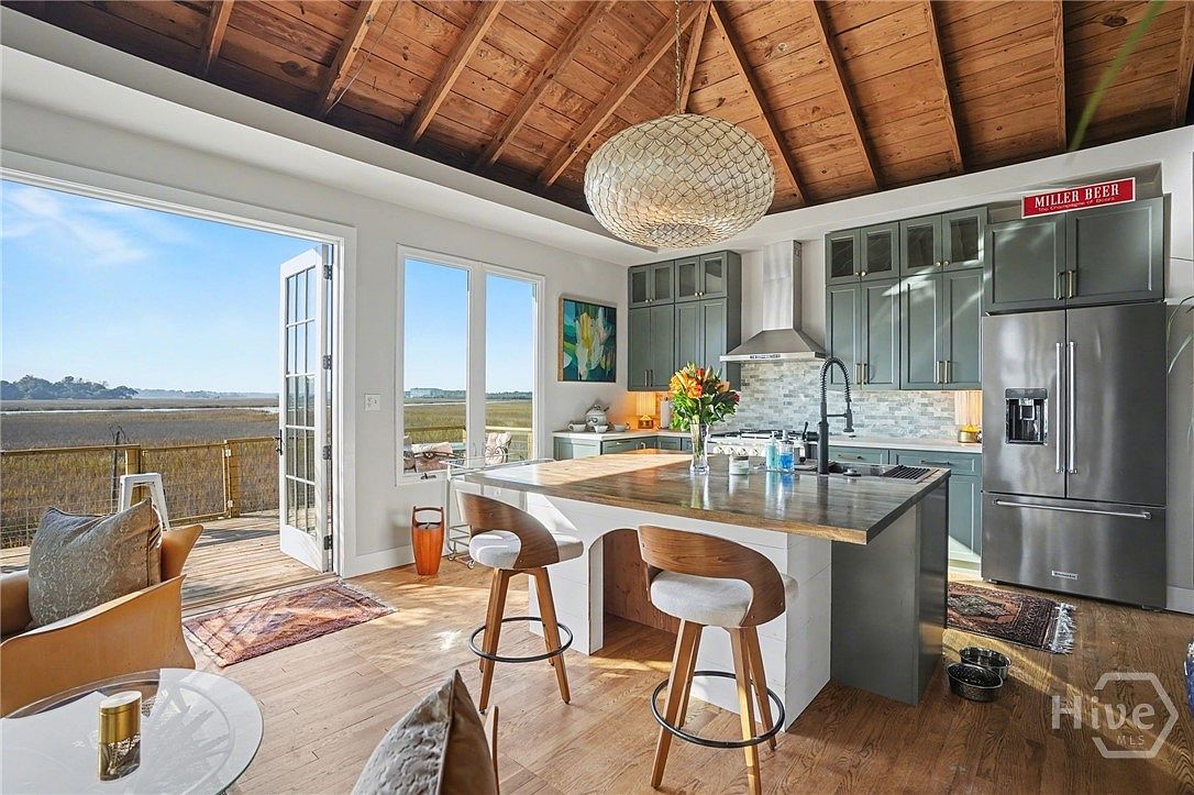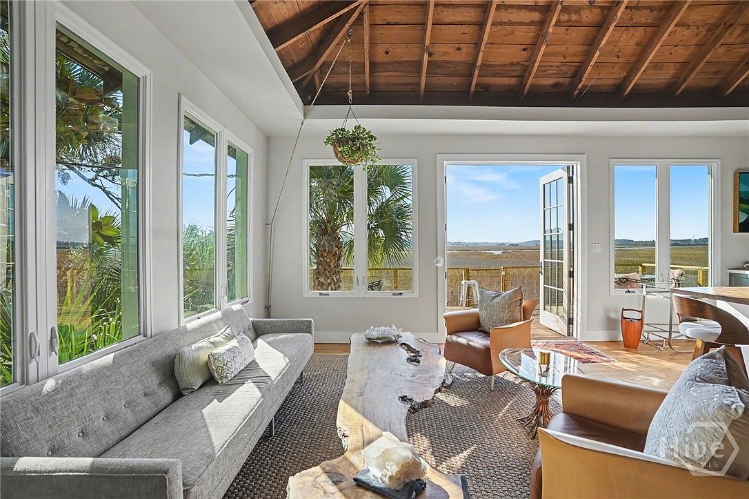 Located in Savannah, GA, this historically significant cypress cabin, known as Shrimp Camp, features one bedroom and one bath with stunning 180-degree marsh views overlooking Gray’s Creek. Built in the early 20th century, the home showcases original hardwood floors and a unique ballast stone chimney. Recent renovations include modern appliances and fixtures, enhancing its historic charm. The property also includes a 200 sq ft mother-in-law suite, providing guest accommodations or income potential, with a STVR certificate in place. The total plot area offers ample space, while the enclosed dog run and storage shed add convenience. With a listing price of $1,290,000, this tranquil hideaway is just minutes from downtown Savannah and Tybee Island.