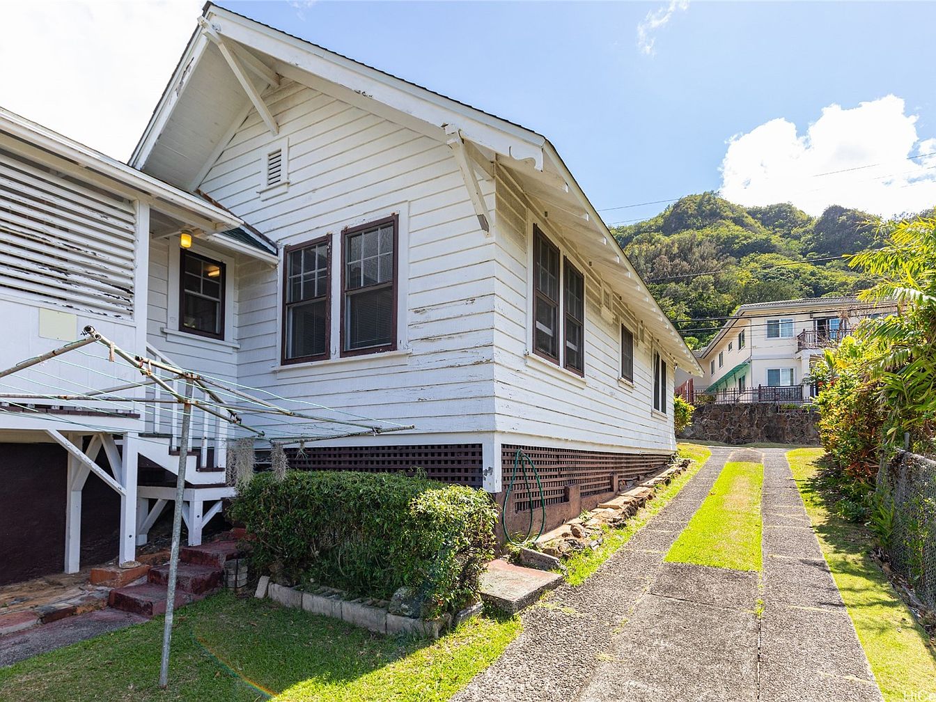 This charming multi-dwelling property in the historic Manoa Valley of Honolulu, built in a classic architectural style, exudes timeless character. Nestled on a spacious lot, the main residence offers 2 bedrooms and 1 bathroom, complemented by a separate 1-bedroom, 1-bath unit ideal for guests or rental income. Constructed with warm natural light and generous living areas, this property boasts a substantial outdoor space for gardening and entertaining. Conveniently located near Manoa Marketplace and the University of Hawai‘i, it provides easy access to cafés and hiking trails. Recently listed at $1,649,000, the property offers ample opportunities for customization, although sold AS IS. The total square footage and plot area emphasize its generous offerings.