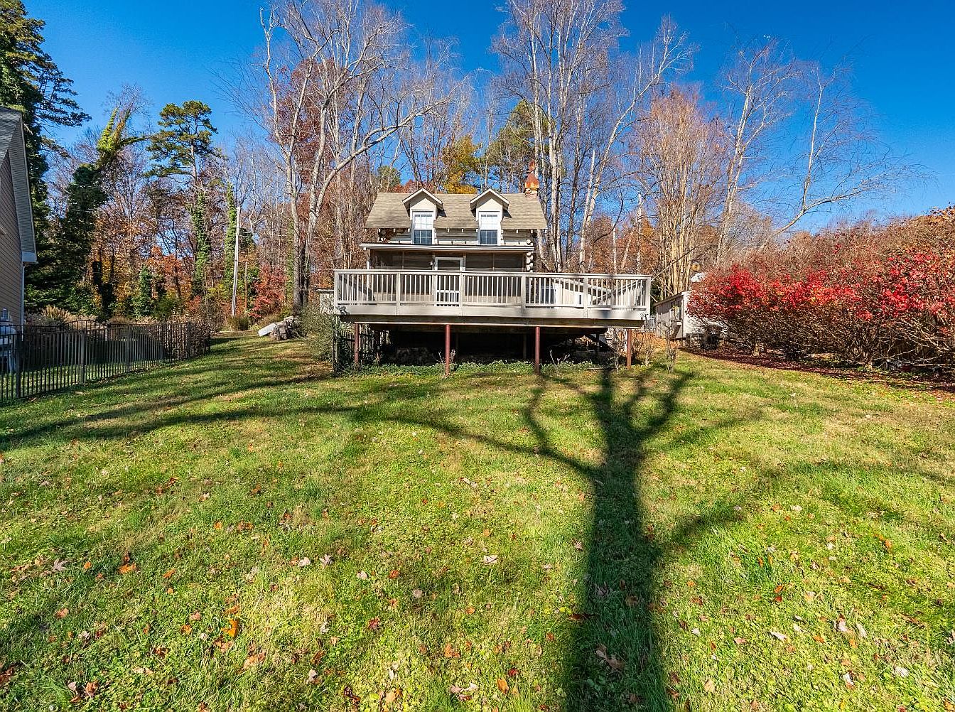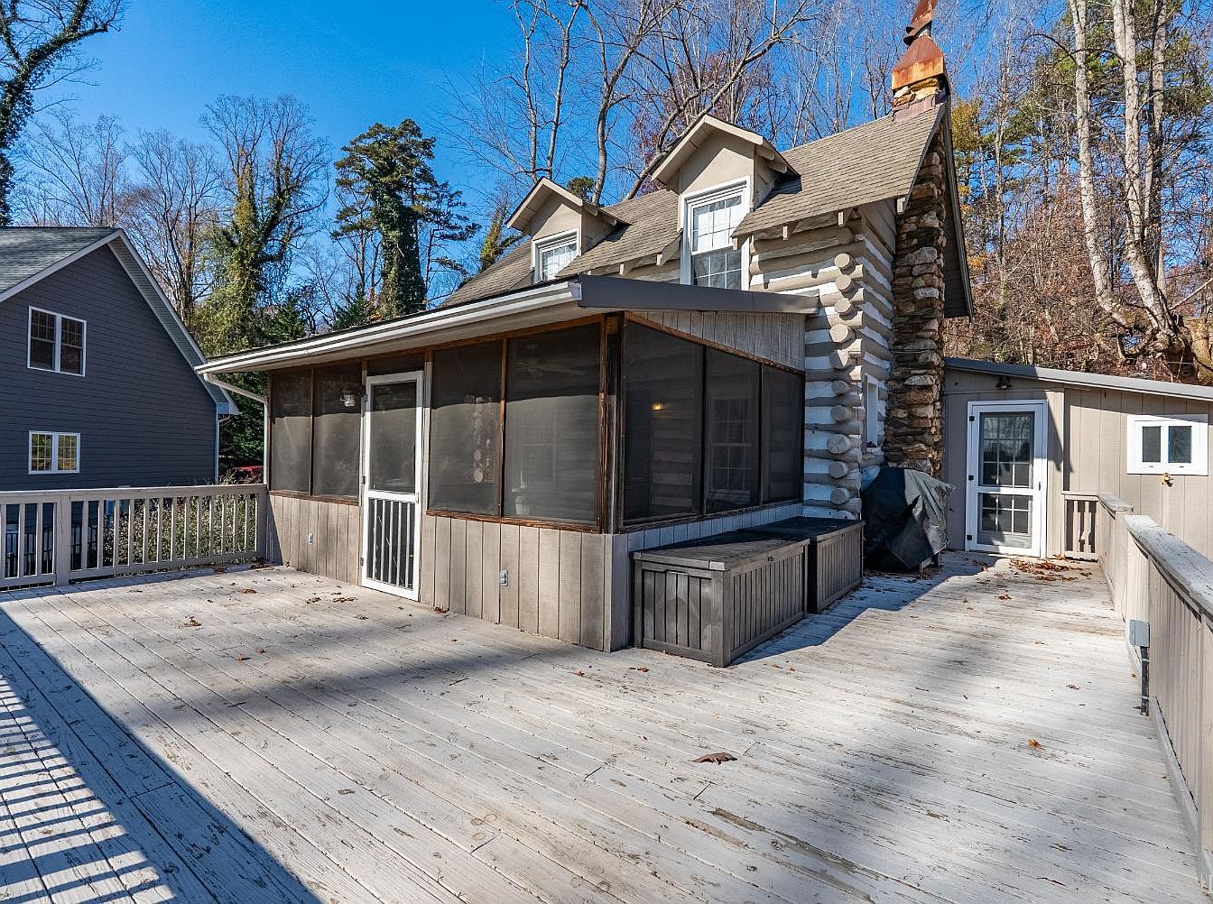 Nestled in Lynchburg, VA, this historical 1940 Timberlake log cabin boasts a rustic charm enhanced by modern updates. The home features classic log architecture with a cozy living space centered around the original fireplace. Its unique layout includes upper and lower rooms for versatile use, along with a newly renovated bathhouse ideal for summer days. Set against a beautiful lawn leading to lakefront views, it offers an inviting outdoor experience. Priced at $399,000, this cabin provides an appealing 2-story design, key outdoor amenities, and a total square footage that emphasizes comfort in a serene setting.