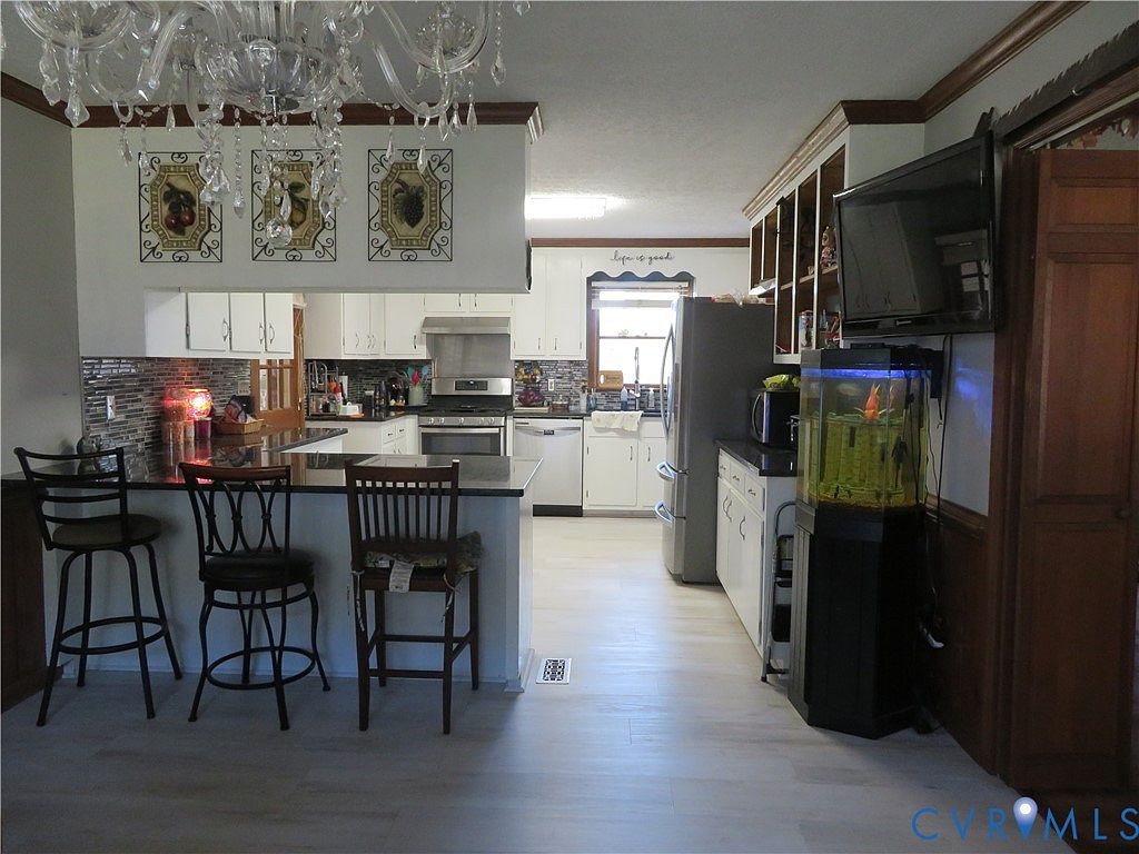 This all-brick rancher, centrally located in Freeman, Virginia, combines serenity with modern convenience. Built in the 20th century, it sits on a generous 2-acre plot adorned with fruit trees and a koi pond, enhancing its historical character. Recent renovations include a newer roof, gutters, HVAC system, and an updated electrical panel box, ensuring comfort and efficiency. The living space features LVP flooring and an open kitchen/dining area, complemented by a cozy living room with a wood-burning stove. This property, listed at $238,000, boasts ample square footage and offers easy access to major routes like I-85 and 460, making it an inviting home for nature lovers and families alike.