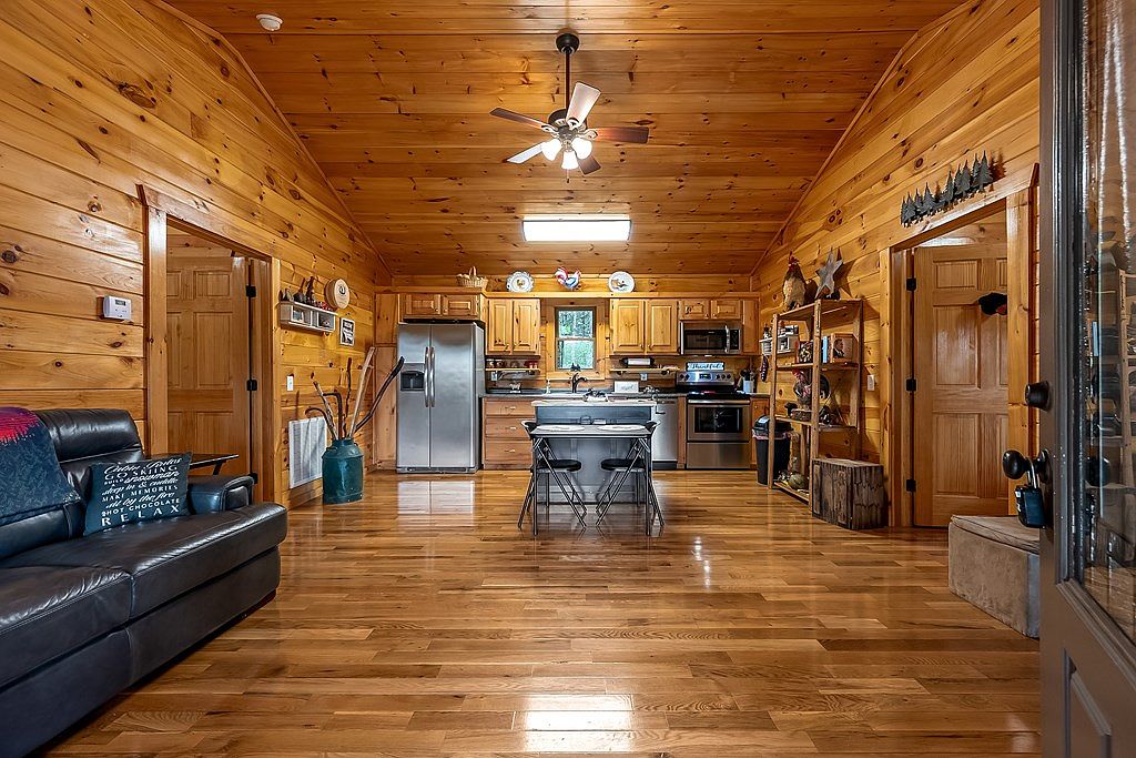 Nestled in the serene Blue Ridge Mountains, this custom-built log home from 2018 offers an inviting retreat with 756 sq. ft. of open living space, including 2 bedrooms and 2 baths. Designed with rustic charm featuring authentic log construction and a metal roof, it provides modern comforts and low maintenance. Situated in Fancy Gap, VA, just five miles from major highways, the home boasts a 340 sq. ft. covered porch and additional 636 sq. ft. of decks for outdoor enjoyment. Recent renovations include a decorative drainage ditch, enhancing the property’s appeal. Priced at $284,900, this turnkey cabin is perfect for full-time living or a vacation getaway, complete with inspected assurance for buyers.