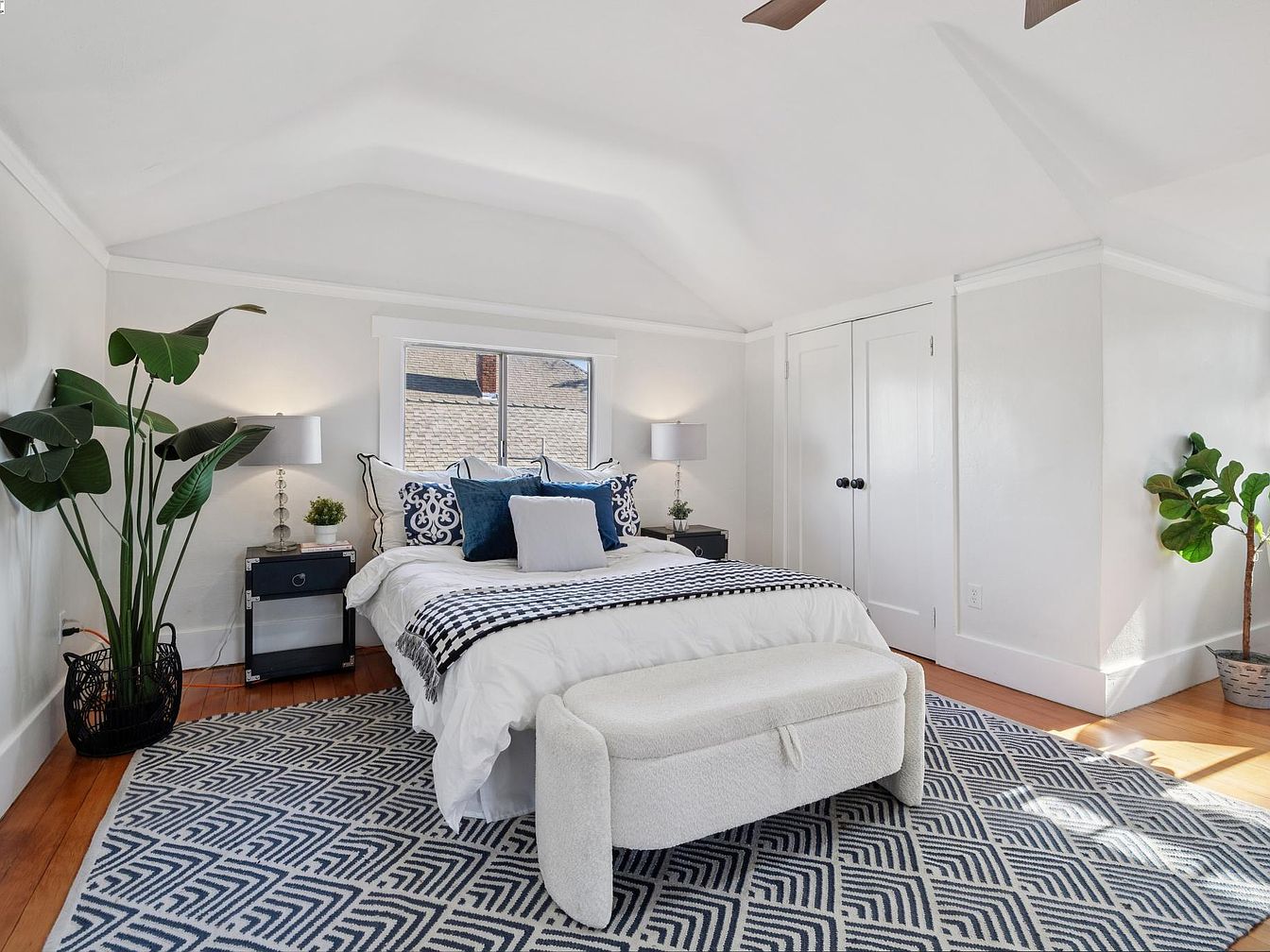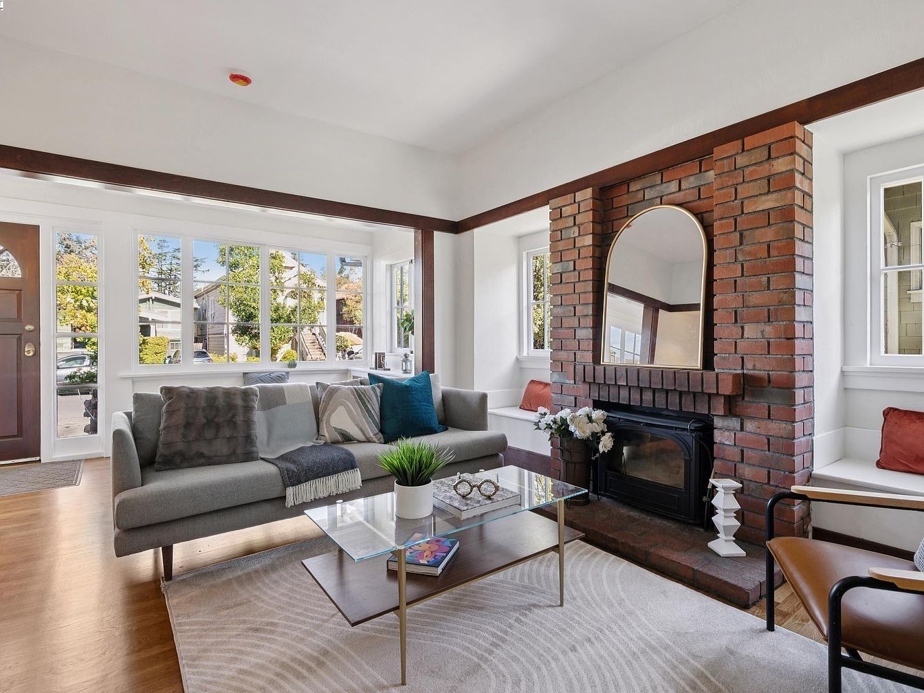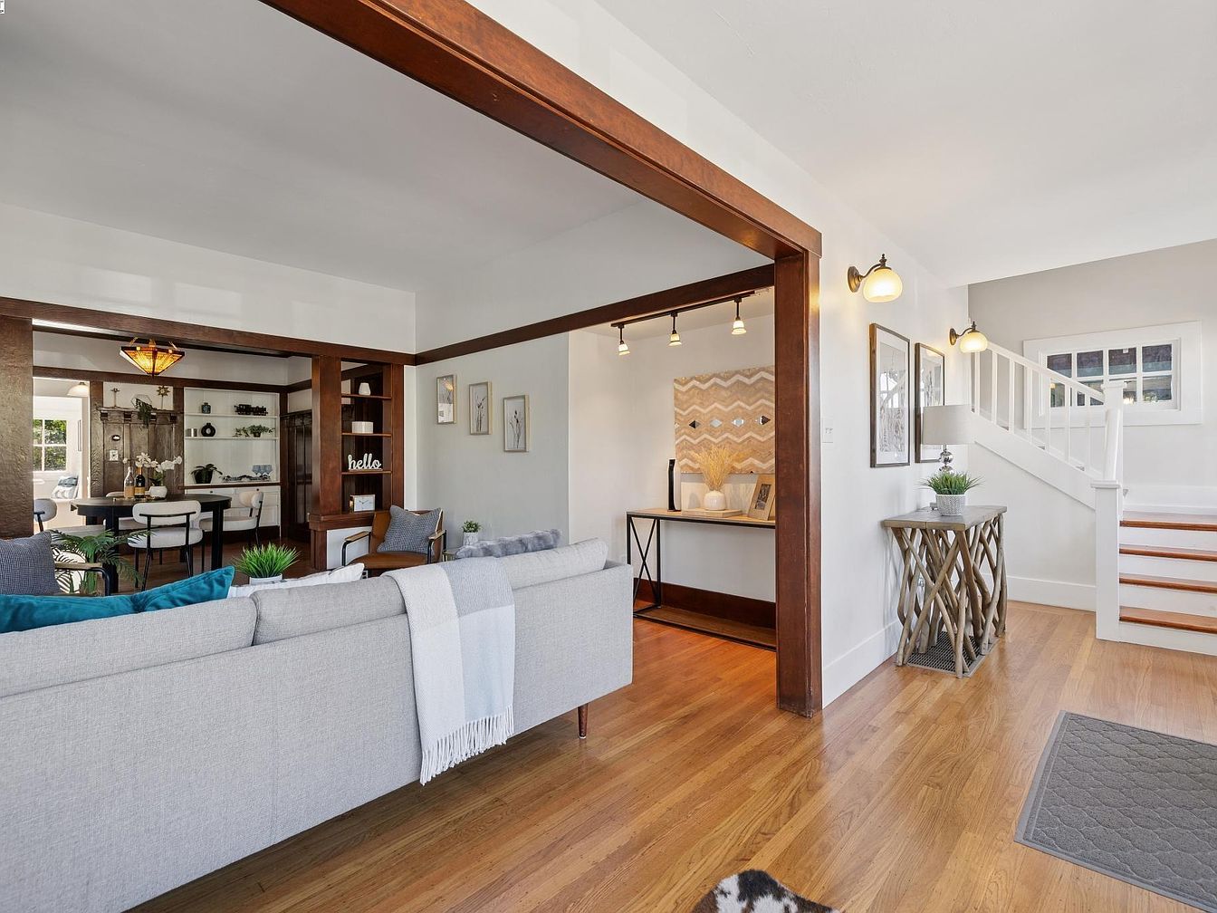 This beautifully maintained 1907 Craftsman bungalow in Alameda’s sought-after East End exudes both historical significance and architectural character, embodying the early 20th-century California Craftsman style with its inviting front porch, shingled exterior, and abundant natural light. With 3 bedrooms, 1.5 baths, and 1,624 sq. ft. on a 4,370 sq. ft. lot, recent renovations include refinished wood floors, fresh interior/exterior paint, and modernized fixtures. The home features period details like wainscoting, box-beam ceilings, built-in shelves, and a Tiffany chandelier, plus a wood-burning stove with a newly working chimney. Listed at $1,095,000, its location near top schools, parks, and local amenities adds to its desirability, making it a rare blend of history and modern comfort.