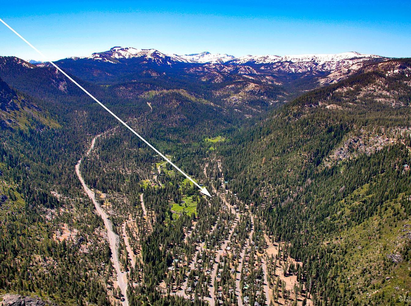 A wide aerial view displays a charming mountain neighborhood nestled in a lush evergreen forest valley. Streets lined with houses wind gently through the trees, offering plenty of space and privacy. The landscape is filled with towering pines, adding to the sense of seclusion and natural beauty. The background reveals snow-capped mountain peaks under a clear blue sky, perfect for families who enjoy outdoor adventures and scenic surroundings. The neighborhood is spacious with open green areas, ideal for children to play safely and for family gatherings. The serene setting exudes tranquility, safety, and a strong sense of community.