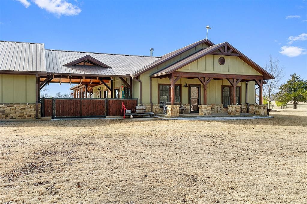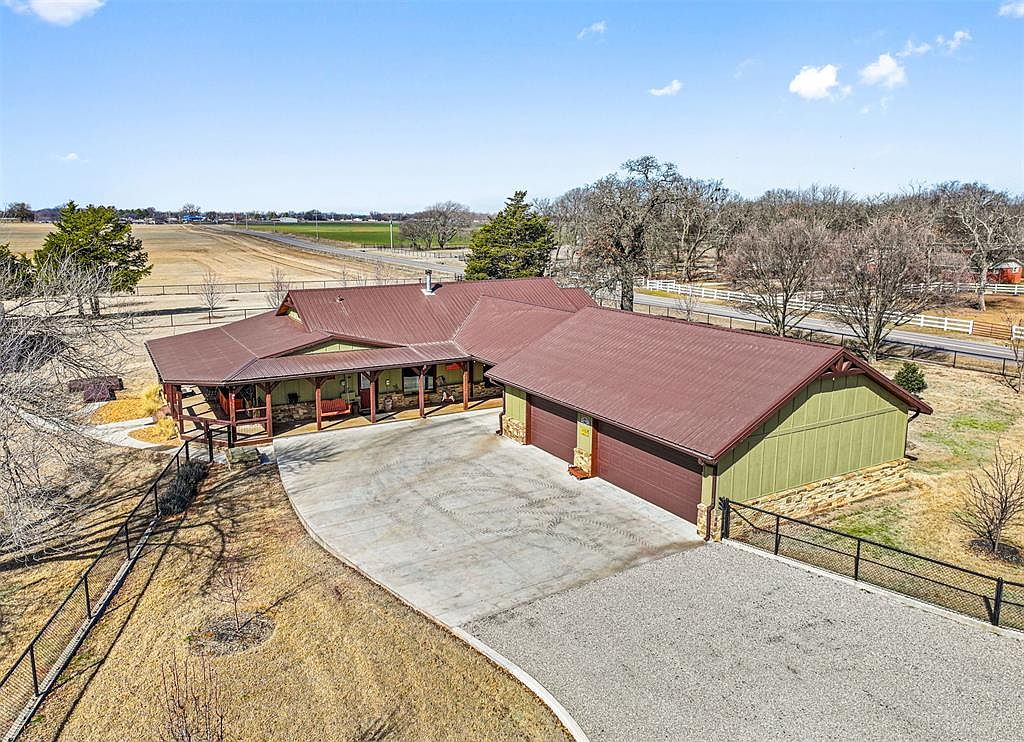 Located in Lexington, Oklahoma, this sprawling 2,000+ sq ft home was built in the early 2000s, exhibiting a modern ranch style that integrates rustic charm with functionality. Set on a 20-acre agriculturally-zoned property, it features 2 spacious bedrooms, a bonus room, and a cozy living area with a wood-burning stove. Recent renovations include new HVAC, ductwork, and Pella windows, ensuring efficiency and comfort. The listing price is $1,200,000. Benefitting from three expansive shops with over 10,000 sq ft of covered space, these facilities offer potential for commercial use or hobbyist endeavors. With professional landscaping and mature trees, this property provides an exceptional lifestyle and opportunities for various outdoor activities.