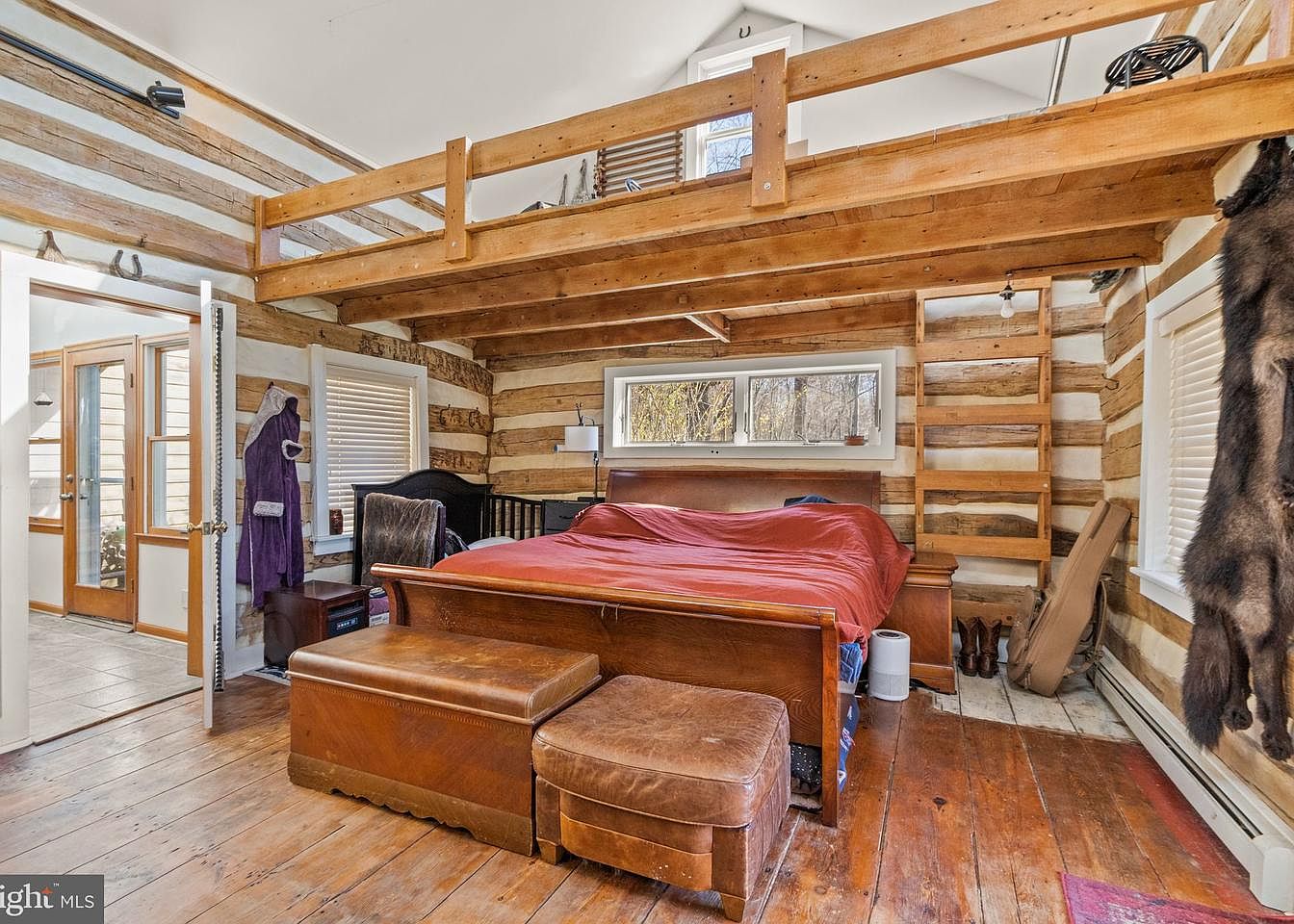 Nestled at the foot of Short Hill Mountain in Lovettsville, VA, this historic gem was originally built in 1773 and spans 8 acres. Featuring a unique blend of rustic log cabin charm and modern amenities, it showcases cathedral ceilings, expansive windows, and a gourmet kitchen, making it perfect for contemporary living. The property underwent recent renovations including a remodeled bathroom and updated kitchen fixtures, with a listing price of $739,900. Total square footage and plot details enhance its appeal, alongside features like a fenced garden, a chicken coop, and ample outdoor space for leisure. Remnants of its storied past, like the old chimney stack, add to the home’s enchanting atmosphere.