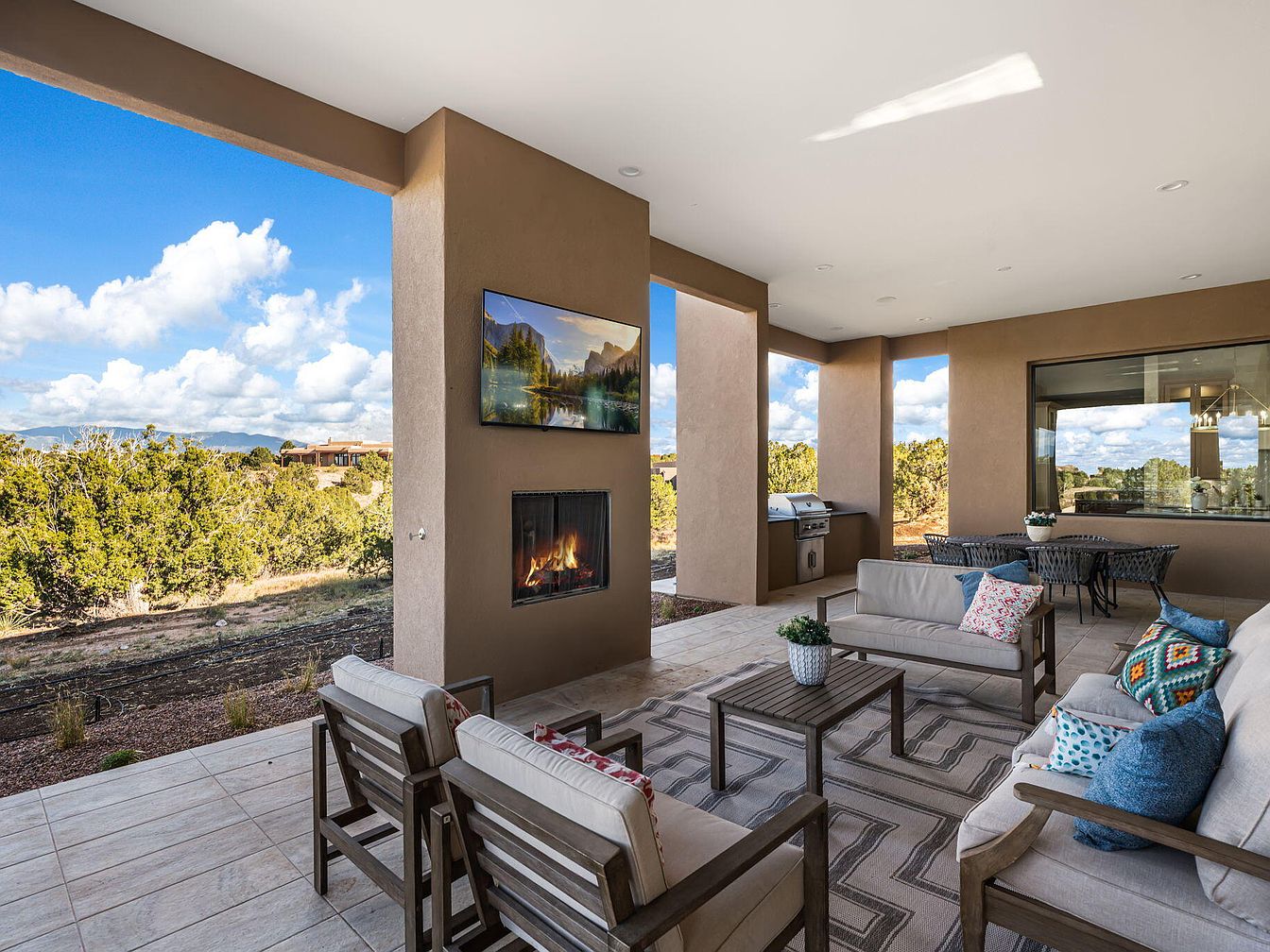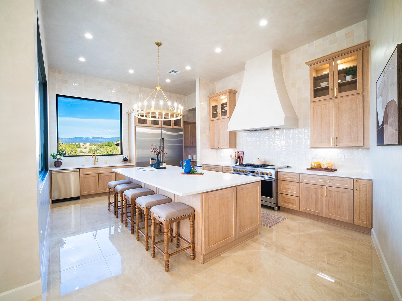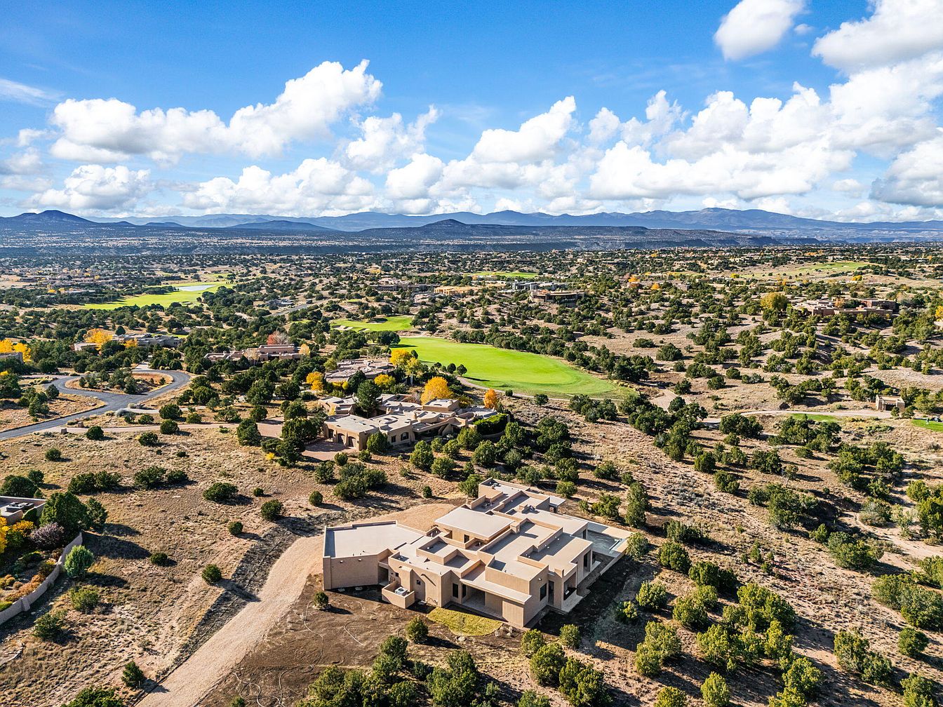 This stunning custom-built estate in the exclusive Las Campanas community of Santa Fe boasts modern elegance fused with traditional Southwestern aesthetics, reflecting the region’s rich heritage. Constructed recently, it showcases a contemporary architectural style with expansive outdoor living spaces offering views of the pristine golf course and Sangre De Cristo Mountains. The significant features include a private pool, soothing hot tub, and state-of-the-art oversized Pella windows. The property spans a generous plot area, with a listing price of $3,500,000, making it a luxurious yet serene retreat perfect for entertaining. Residents enjoy unmatched tranquility and sophistication in this exceptional single-story home.