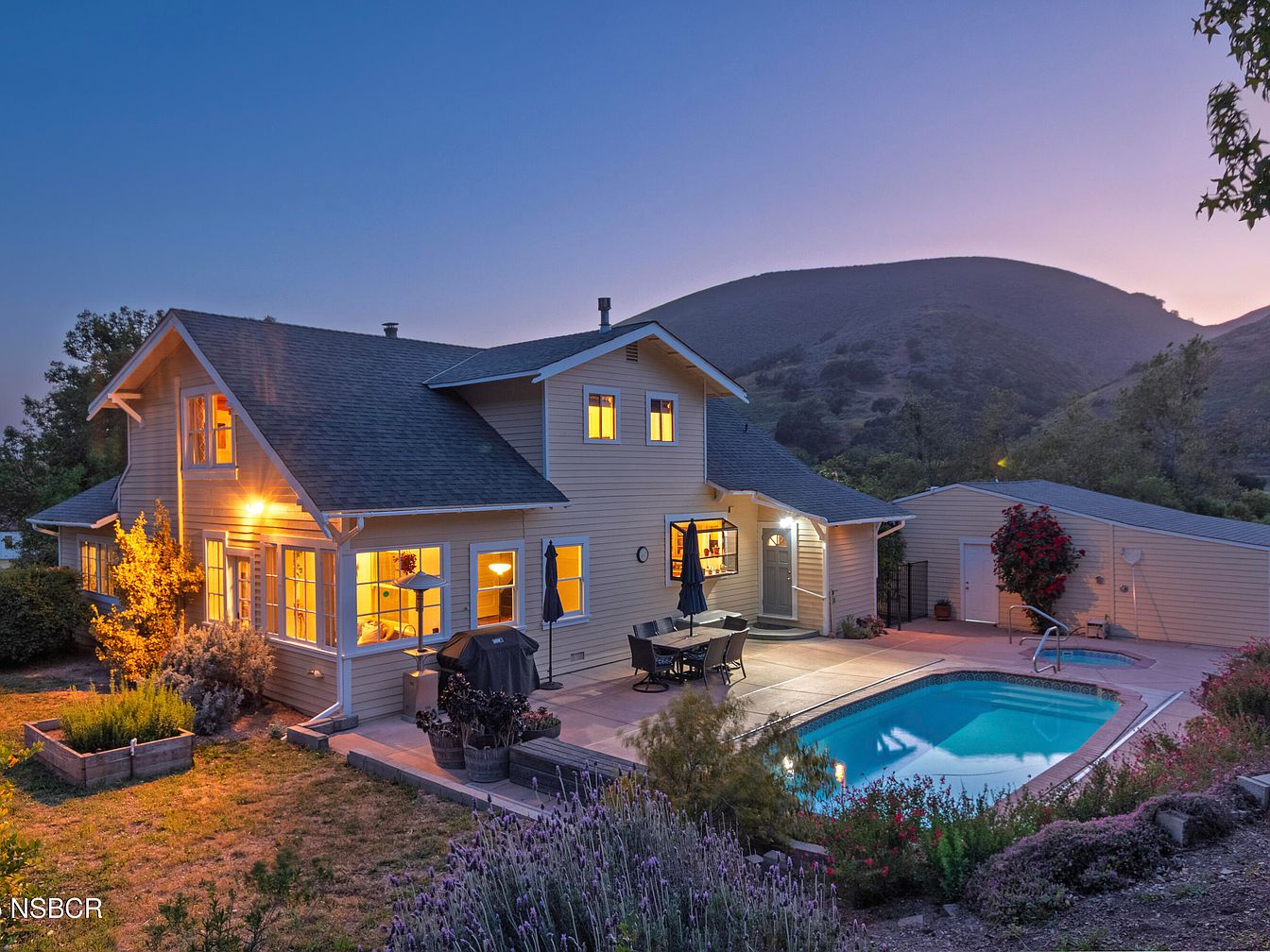 This storybook farmhouse, nestled in the picturesque Santa Maria Valley, showcases a rich history as it was originally constructed in 1914 and relocated to its current site 42 years ago. The home boasts a classic farmhouse architectural style, featuring hardwood floors and a sun-filled layout across approximately 2,800 sq ft. Recently updated with a new roof, kitchen refresh, and fresh paint, it harmonizes vintage charm with modern convenience. Priced at $1,695,000, the property encompasses flat, usable land ideal for various agricultural pursuits and includes amenities like a solar-powered pool and a spacious barn. Located near the renowned Foxen Canyon Wine Trail, this home is perfect for tranquility seekers and entertainers alike.