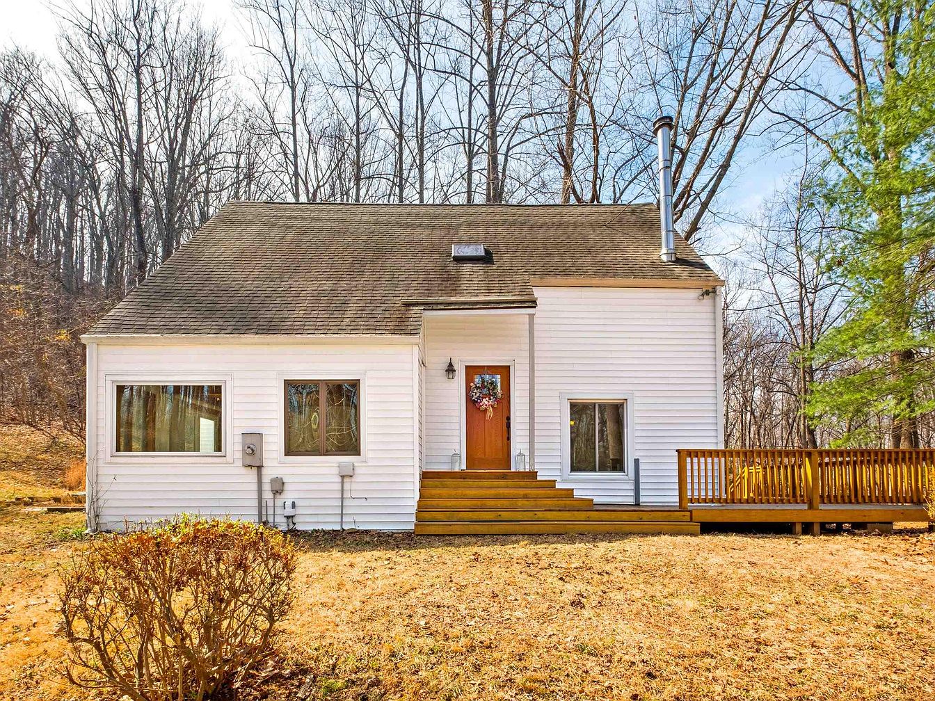 This delightful 3-bedroom, 2-bath woodland cottage, built circa the early 20th century, combines rustic charm with modern comforts. Located in Ivy, only 15 minutes from Charlottesville, it features a unique blend of architectural styles highlighted by vaulted ceilings and a sunken living area with a wood-burning stove. The property spans a generous plot, priced at $625,000, making it ideal for both a primary residence or a serene retreat. Recent renovations include updated carpets and a fully encapsulated crawlspace. Outdoor amenities consist of a wooden deck for summer barbecues, a spacious backyard perfect for gardening, and the potential for further development with a large storage shed. Experience tranquility in this picturesque setting.