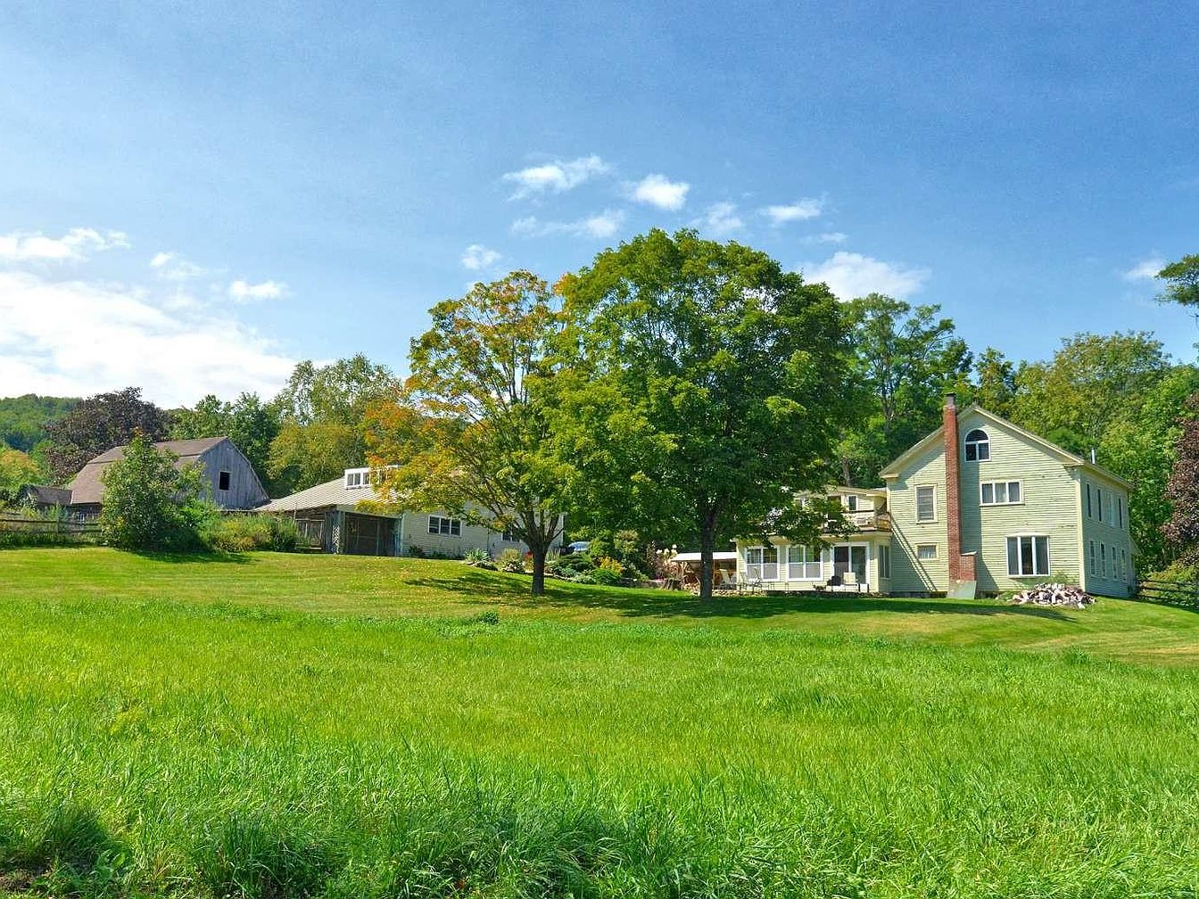Located in Pawlet, Vermont, this charming farmhouse, built in the early 1900s, reflects a traditional farmhouse architectural style with modern renovations. Set on 8 acres of private land, it offers an open-concept kitchen featuring custom Cherry cabinetry, two sinks, and ample cooking space illuminated by a large beveled glass window. The inviting sunroom opens to a stone patio, while the master bedroom boasts unique built-in features and stunning views. Recent updates include a 2,500 sqft multi-purpose building, perfect for guests, and a 750 sqft powered horse barn. Listed at $995,000, this property combines historic charm with modern conveniences, ideal for those seeking to live amidst the tranquil Green Mountains.