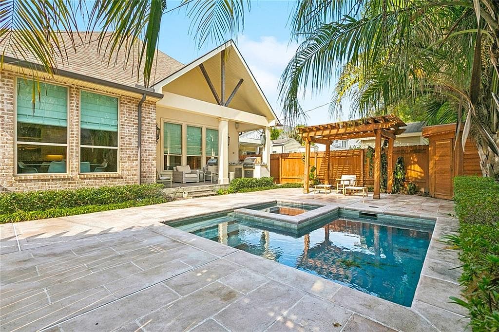 Built in 2015, this stunning home in Metairie, LA, blends modern luxury with functionality, featuring 11-foot ceilings on the main level and 9-foot ceilings upstairs. The well-appointed gourmet kitchen showcases high-end appliances, including Wolf and Bosch, complemented by a butler’s pantry. The property offers an open layout perfect for entertaining, with a landscaped backyard, pool, and outdoor kitchen. Key highlights include the first-floor primary suite, office, and ample storage. Recent renovations enhance its appeal, while gas lanterns add charm. Priced at $1,795,000, the home encompasses spacious living, with a total square footage of approximately 4,200, situated on a generous plot, ensuring an exquisite modern living experience.