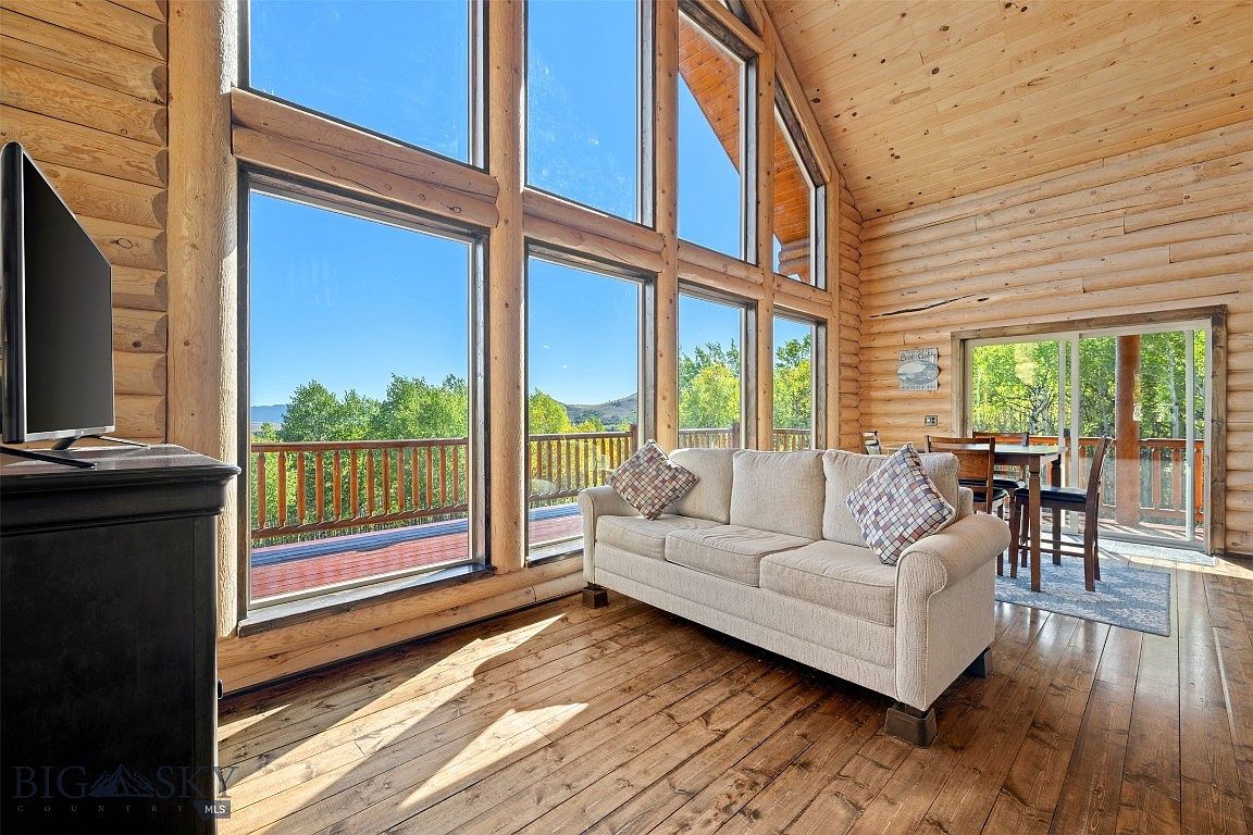 394 Bear Paw Trail in Anaconda, MT, is a stunning log cabin epitomizing luxurious off-grid living on a sprawling 26-acre plot surrounded by picturesque ponds, woods, and breathtaking mountain vistas. Blending rustic, handcrafted architectural style with modern sustainability, solar power, a propane tank, and commercial-grade generator, this home ensures true self-sufficiency. Ideal for family life with a spacious loft and unfinished basement for expansion, the property features a soapstone wood stove, a durable metal roof, and large windows inviting the outdoors in. A brand-new 30’ x 24’ shop adds practicality, and families can enjoy abundant recreation right on their doorstep. Priced at $599,000, this Montana sanctuary offers both seclusion and convenient access to major towns and airports.