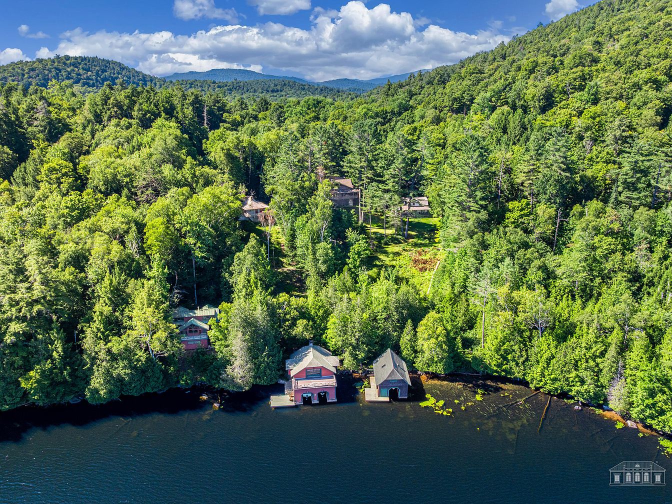 The Panther Cove Compound, located on Upper Saranac Lake, NY, is a historically significant legacy estate built starting in 1928 by Mrs. Emily Donald. This remarkable property spans 16.5 acres and features over 482 feet of shoreline, with diverse architectural styles including the charming White Farm House (c.1890s) and whimsical Japanese House (c.1910). Recent renovations include a modern kitchen and new windows, enhancing its original allure. The estate, now offered at $4,200,000, includes several unique buildings, expansive wooded areas, and provides exceptional privacy. Notably, the Main House as well as the Big and Little Boathouses cater to classic lakeside living, embodying the rich heritage of the Adirondack region.