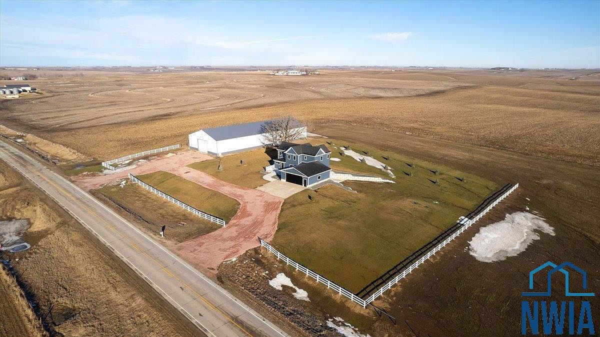 Located in Kingsley, IA, this 1907 2-story farmhouse offers a blend of historical charm and contemporary living on over 3.5 acres. Recently remodeled to a high standard in 2023, the home features a main floor master suite, updated laundry facilities, and a cozy living space with an electric fireplace. The property includes a substantial 992 sq ft garage and a 2011 Morton steel building equipped with modern amenities, including climate control, making it ideal for both homesteading and business. Priced at $985,000, the home provides ample space with various functional rooms, including a large walkout basement, emphasizing its versatility for potential owners.