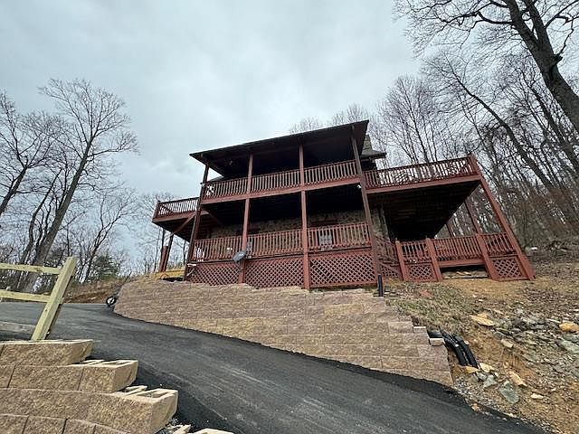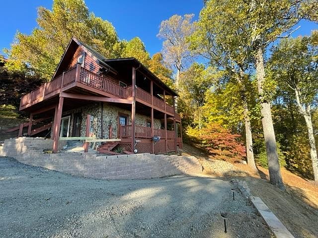 Nestled in the serene hills of Fancy Gap, VA, this charming Mountain Log Cabin offers stunning Piedmont views just off the Blue Ridge Parkway. Built in an inviting rustic architectural style, the home features 2 bedrooms and 2 baths, designed for modern comfort with an open-concept living area and an expansive deck for outdoor entertainment. Recent renovations include a newly paved driveway and decorative fencing completed in 2024. Priced at $359,000, this home boasts ample plot area and square footage, alongside community amenities like a swimming pool, tennis courts, and fishing lake. The picturesque landscape and captivating night views enhance its historical significance as a peaceful retreat.