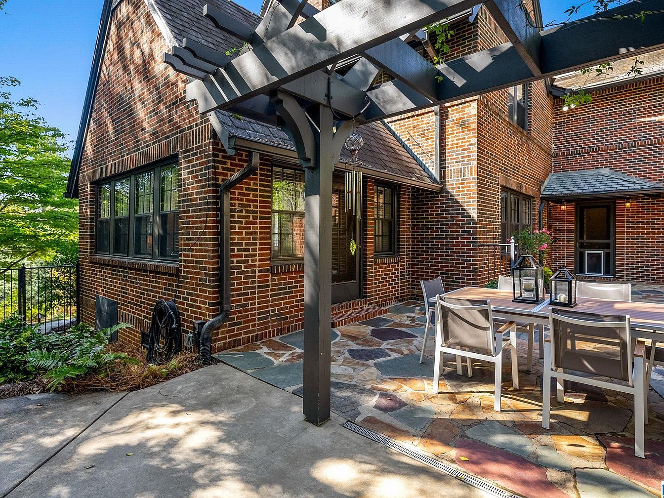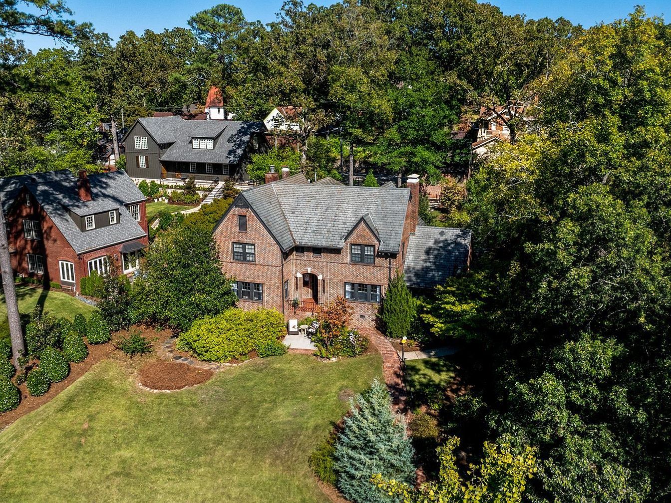 This exquisite Forest Park home in Birmingham, Alabama, boasts historic charm and significant architectural value, likely dating back to the early 20th century, reflecting classic Tudor Revival style with its steep gabled roof, detailed brickwork, and arched entryway. Beyond its original character, the house has undergone thoughtful renovations, including an updated kitchen with marble countertops and stainless steel appliances, refreshed bathrooms, and preserved hardwoods. Spacious and inviting, the residence features a formal living room, keeping room, and a welcoming foyer, while outdoors, the patio and fire pit offer ideal spaces for relaxation. Priced at $1,150,000 and set on a lush, landscaped plot near Triangle Park, this home is perfect for those desiring both history and modern comfort. Square footage and plot area details are not specified.