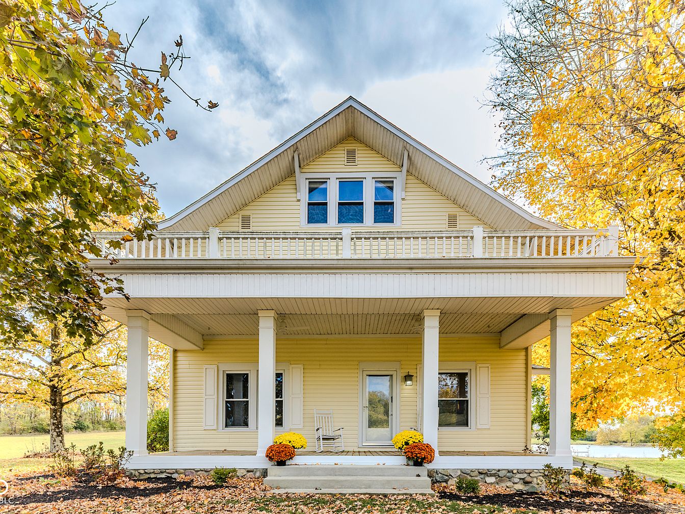 This stunning century home in Selma, Indiana—a fine example of early 20th-century traditional American architecture—blends historical charm with modern amenities. Set on a spacious plot with manicured lawns and mature trees, its welcoming front porch and large columns exude timeless elegance. Built in the early 1900s, this three-story residence features period details such as pocket doors, built-in cabinetry, and French doors that open to an expansive family room and deck area. Recent renovations include a new roof, remodeled bathrooms, and updated HVAC, while luxurious touches like the master suite and a gourmet kitchen elevate its appeal. With a listing price of $1,399,000, the property also boasts two four-car garages, an inground pool, and a newer dock.