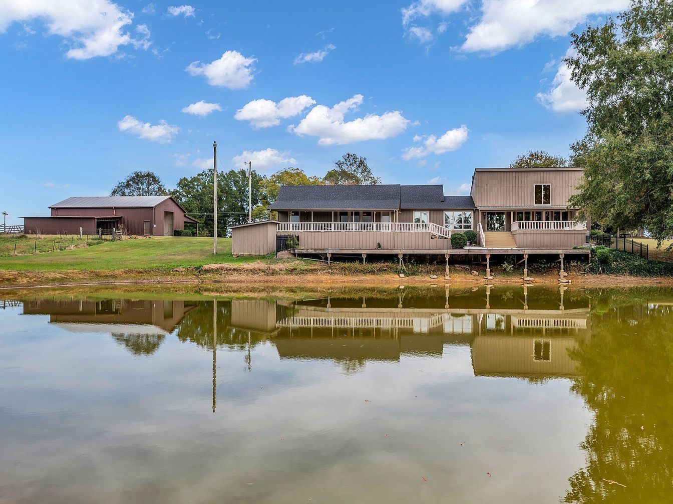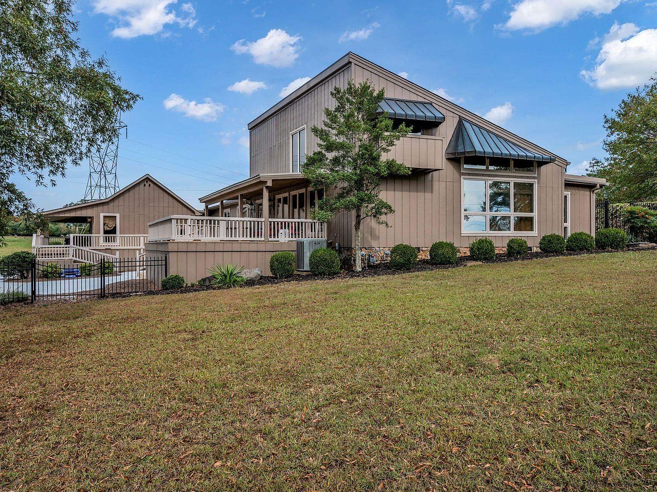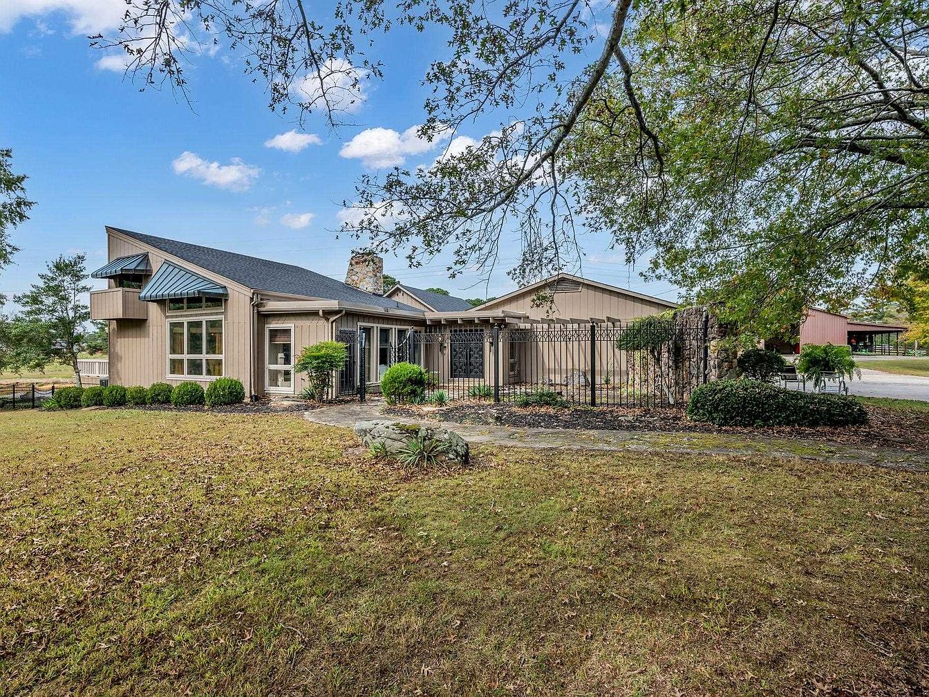 This distinctive nearly 4,000 sq ft estate outside Cullman city limits, in Vinemont, Alabama, merges Southern charm with a unique modern architectural style featuring striking rooflines and expansive windows. Built on a sprawling, restricted 28-acre mini farm—divisible into two parcels—the property includes manicured fencing, tranquil ponds, a granite pool, and a substantial barn designed for equipment or RV storage. High-ceilinged entryways, hardwood floors, a dramatic stone fireplace, and panoramic countryside views create an inviting interior, while modern touches like granite countertops, stainless appliances, and an office add functional luxury. The main bedroom is conveniently on the first floor with deck access, and recent renovations emphasize both family living and entertaining. Listed at $1,200,000.
