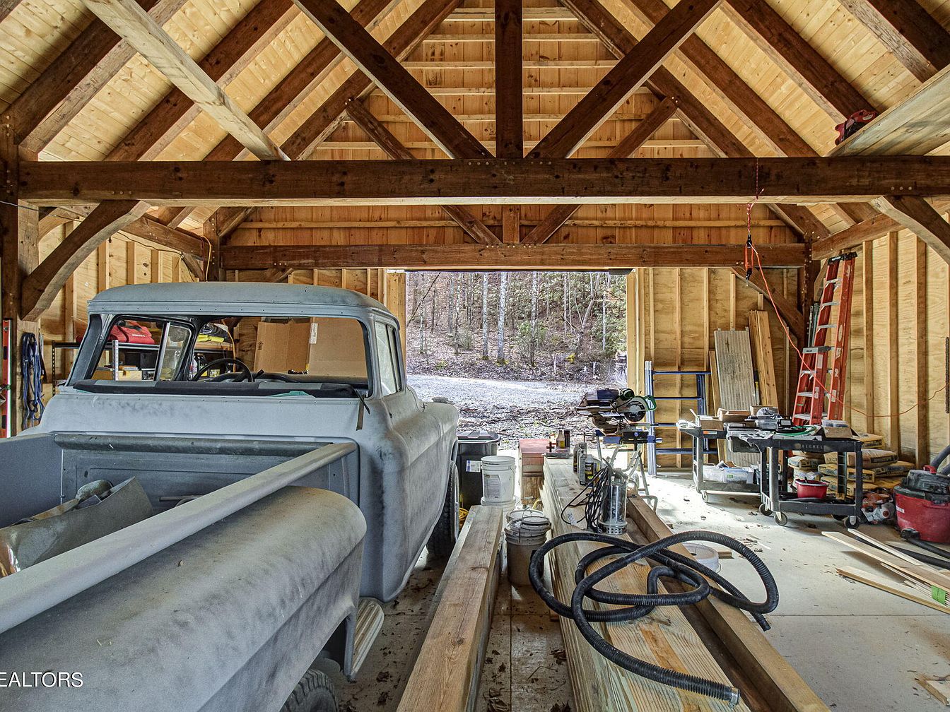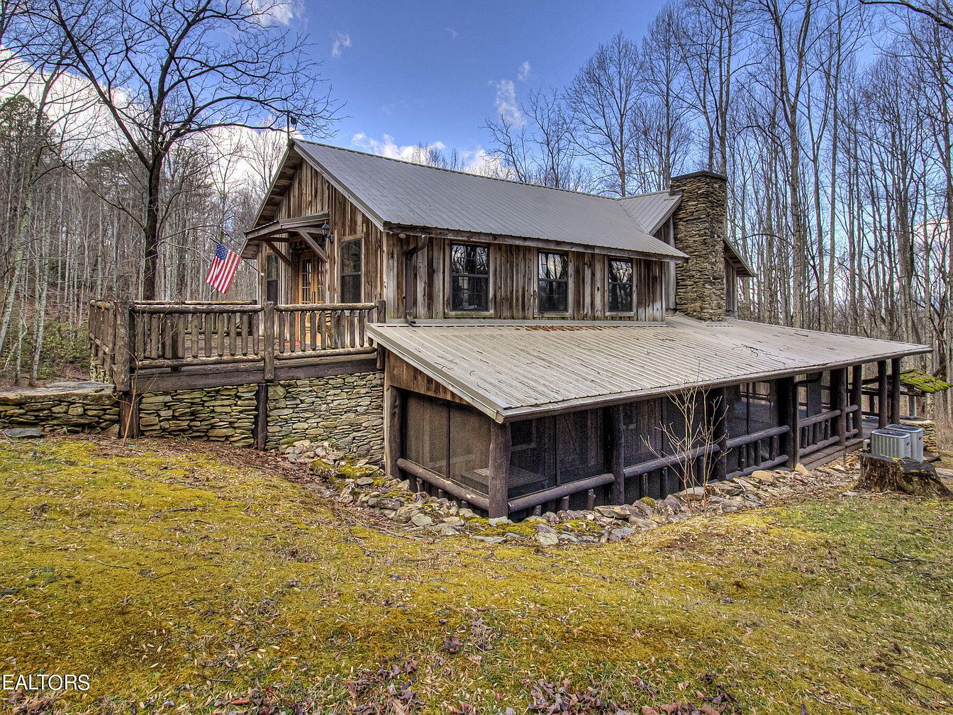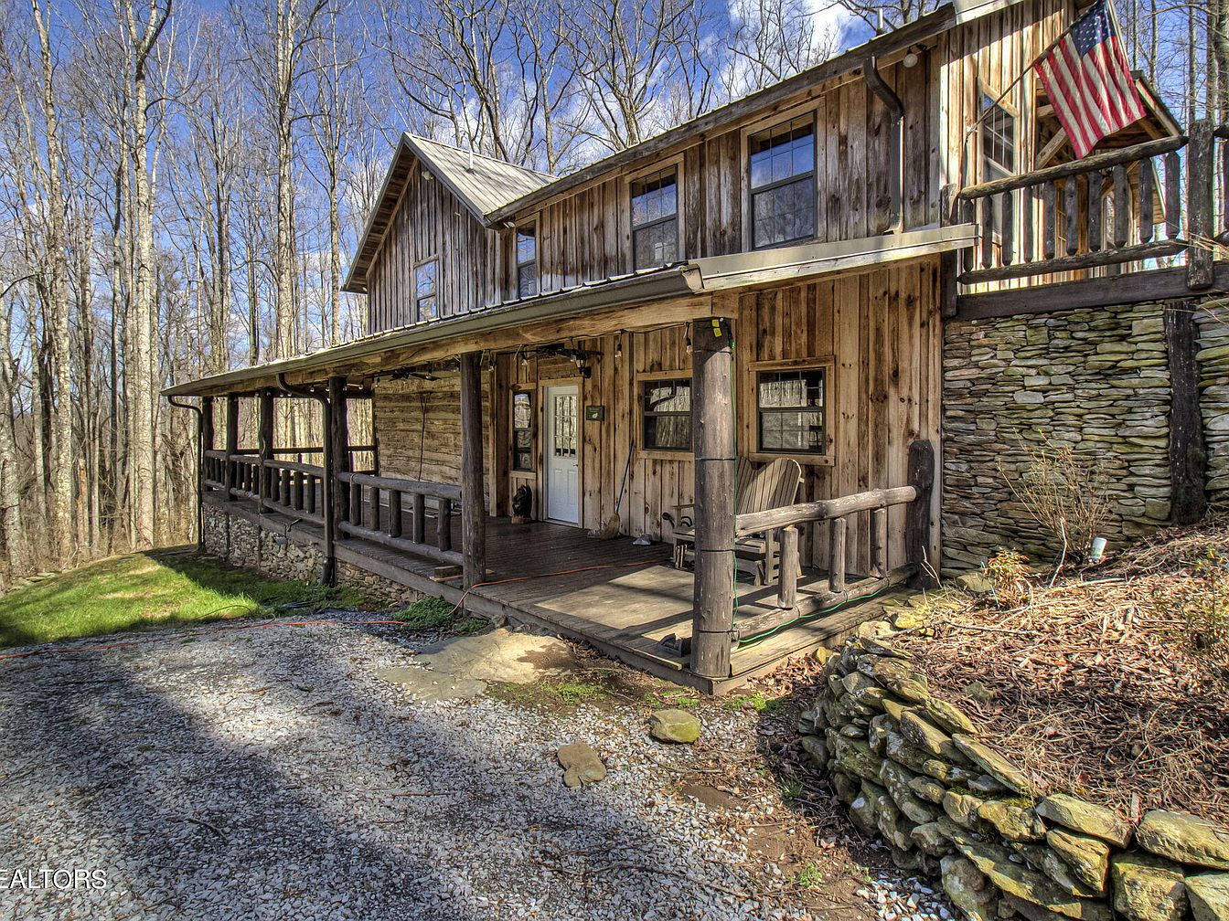 Nestled in Townsend, TN, this enchanting century home combines rustic elegance with modern amenities. Built on a stunning 65+ acre greenbelt property, it offers breathtaking mountain and valley views, ideal for equestrians. The property includes a renovated 2-bed, 2-bath cabin featuring custom woodwork and an updated kitchen, alongside a newly constructed timber frame barn. Historical elements, like the original cantilever barn, add historical significance to the residence. Listed at $2,275,000, this home embraces tranquility while remaining accessible to town. The total square footage and specific plot area details highlight its expansive potential, making it perfect for a family compound or simply a private retreat amongst nature.