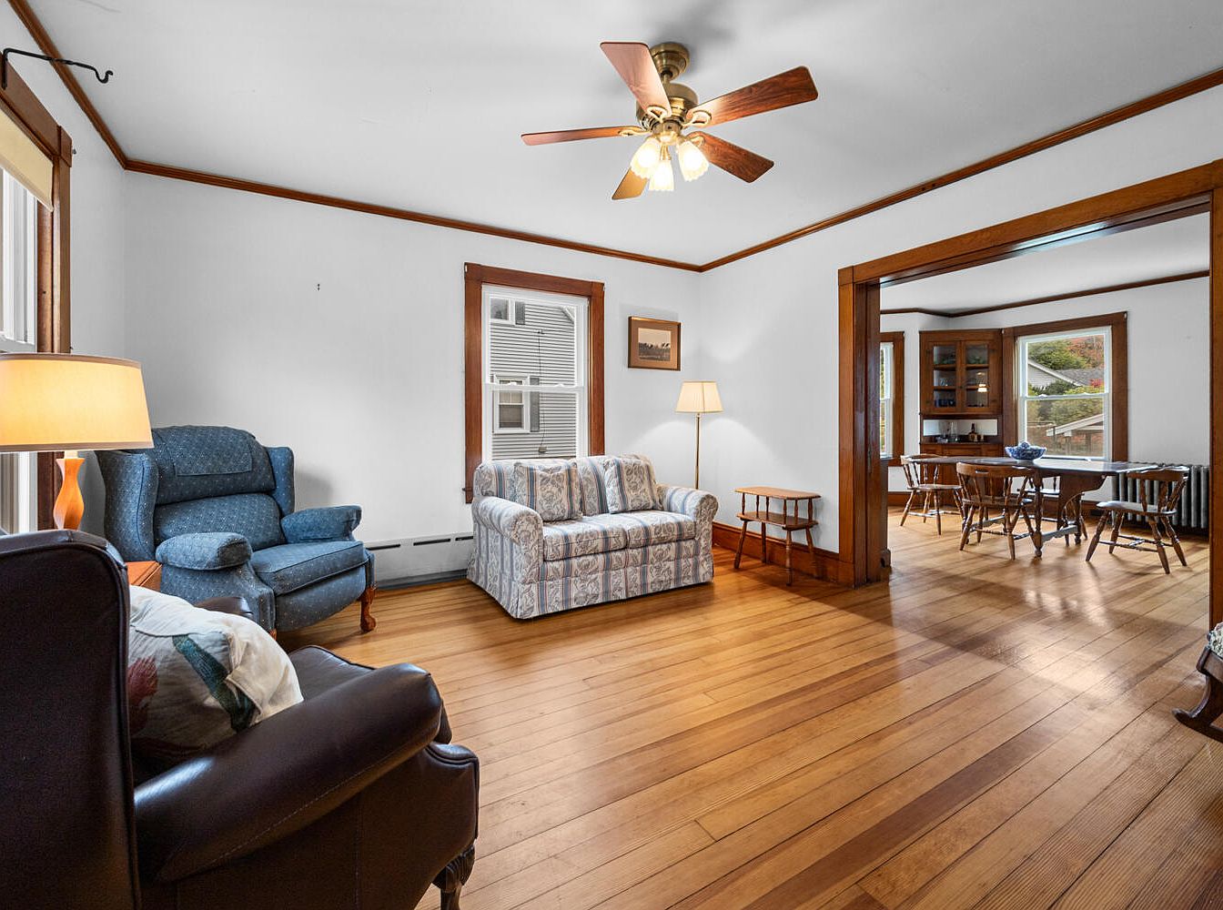 This charming turn-of-the-century home in Northeast Harbor, ME, built in the early 1900s, reflects significant architectural heritage with its period-specific characteristics, including original hardwood floors and millwork. The 3-bedroom, 1.5-bath residence spans approximately 1,400 square feet on a +0.34-acre corner lot, featuring a wraparound deck and inviting four-season room. Noteworthy renovations include updated kitchen and bath facilities, while maintaining original elements like pocket doors and wood trim. With a listing price of $1,200,000, the property is well-positioned near local amenities such as shopping and clubs, combining historical significance and modern comfort in a picturesque setting.