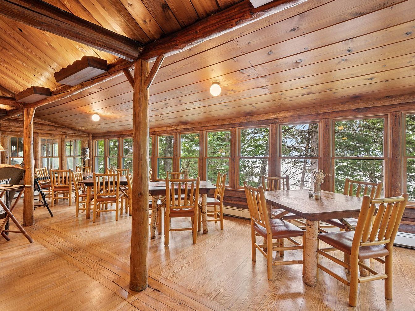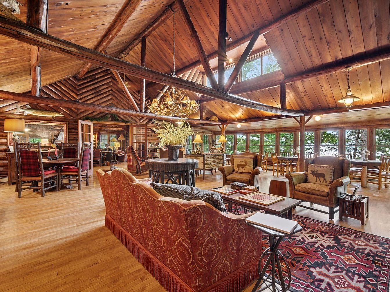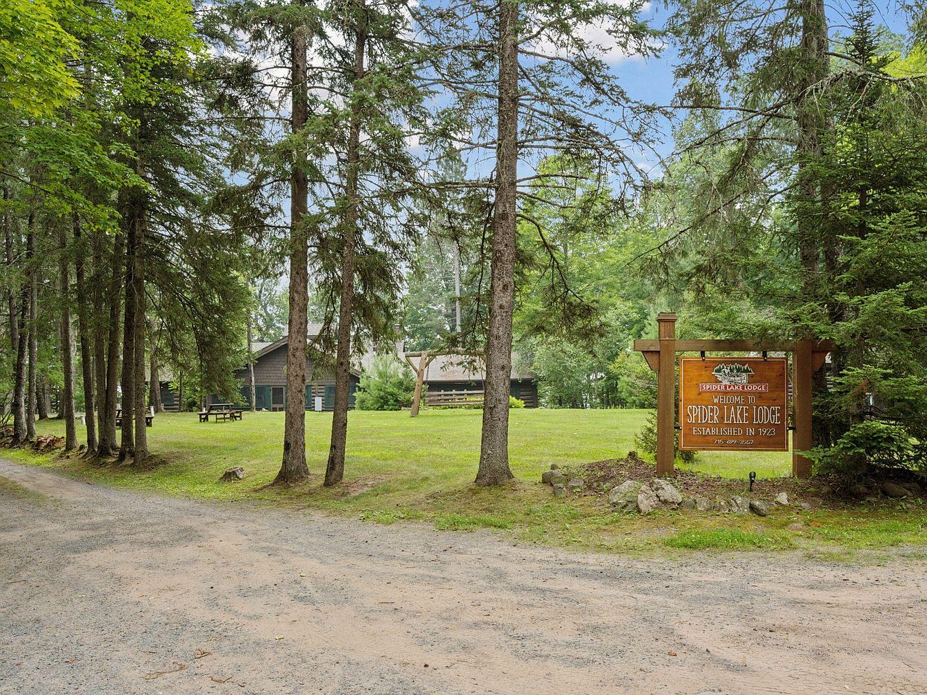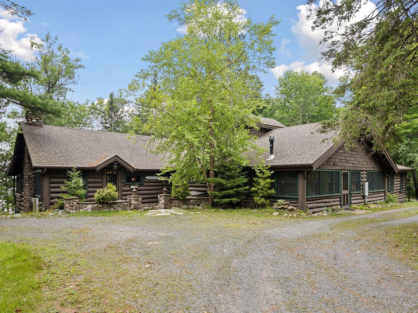 Originally built in 1923, Spider Lake Lodge is a historic log property nestled on the northern shore of Big Spider Lake, Hayward, WI. This iconic lodge showcases a charming blend of rustic log architecture with modern amenities, highlighting its listing on the National Register of Historic Places. Recently renovated since 2018 with new windows, a roof, and upgraded mechanical systems, it features eight guest rooms and nine bathrooms. The expansive lodge includes a large Great Room and lake porch, ideal for scenic relaxation. Set on a versatile plot with a listing price of $1,695,000, it offers low-maintenance living through the Moody’s Association, enhancing both leisure and investment possibilities.