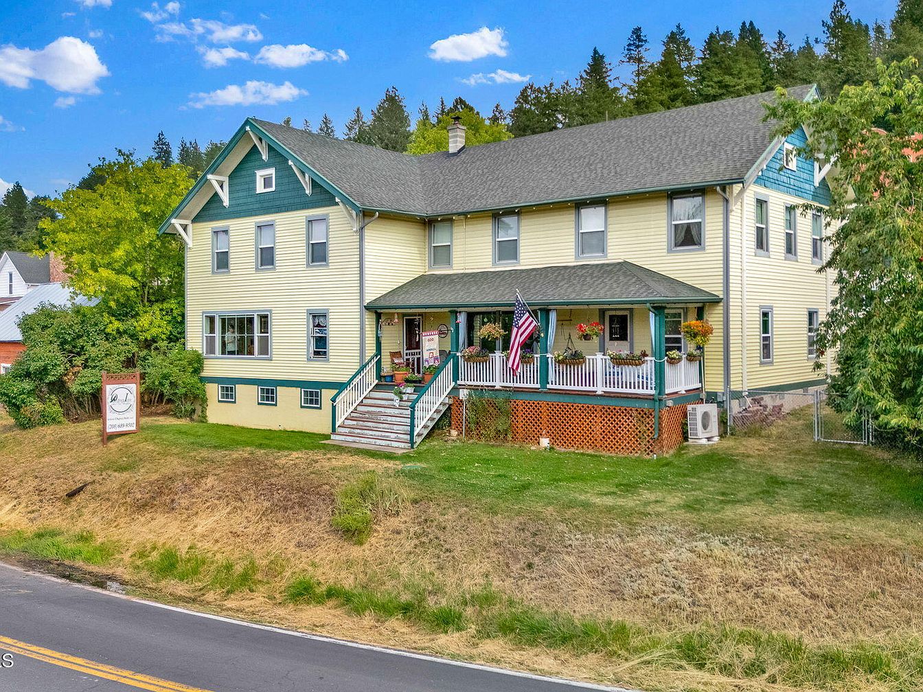 This beautifully preserved century home, the historic Osprey Inn, stands proudly in Harrison, Idaho, overlooking Lake Coeur d’Alene. Built in the early 1900s, its architecture features classic elements typical of early 20th-century American design—angled gables, decorative brackets, and a welcoming front porch. Available for $1,499,000, this versatile property offers five spacious ensuite guest rooms, separate main-level living, and a professional kitchen, ideal for boutique lodging or private residence. Recent updates have enhanced its appeal while retaining historic charm. Spanning a generous plot with mature landscaping, it provides direct lake access and proximity to the scenic Trail of the Coeur d’Alenes, making it a sought-after retreat for guests and investors alike. Total square footage and plot area are not specified.