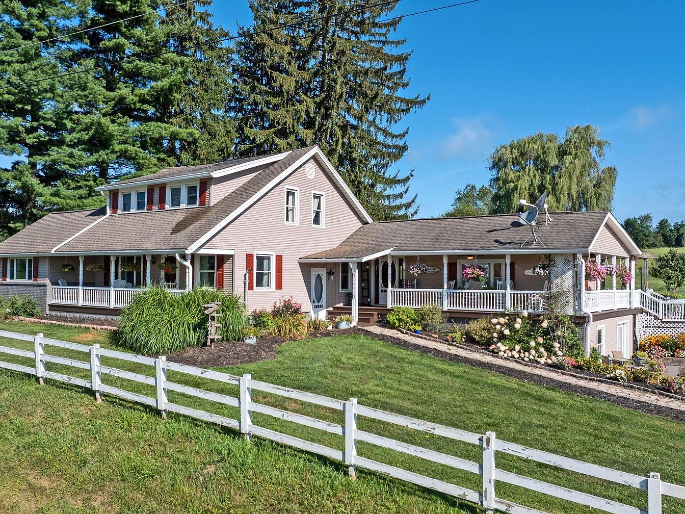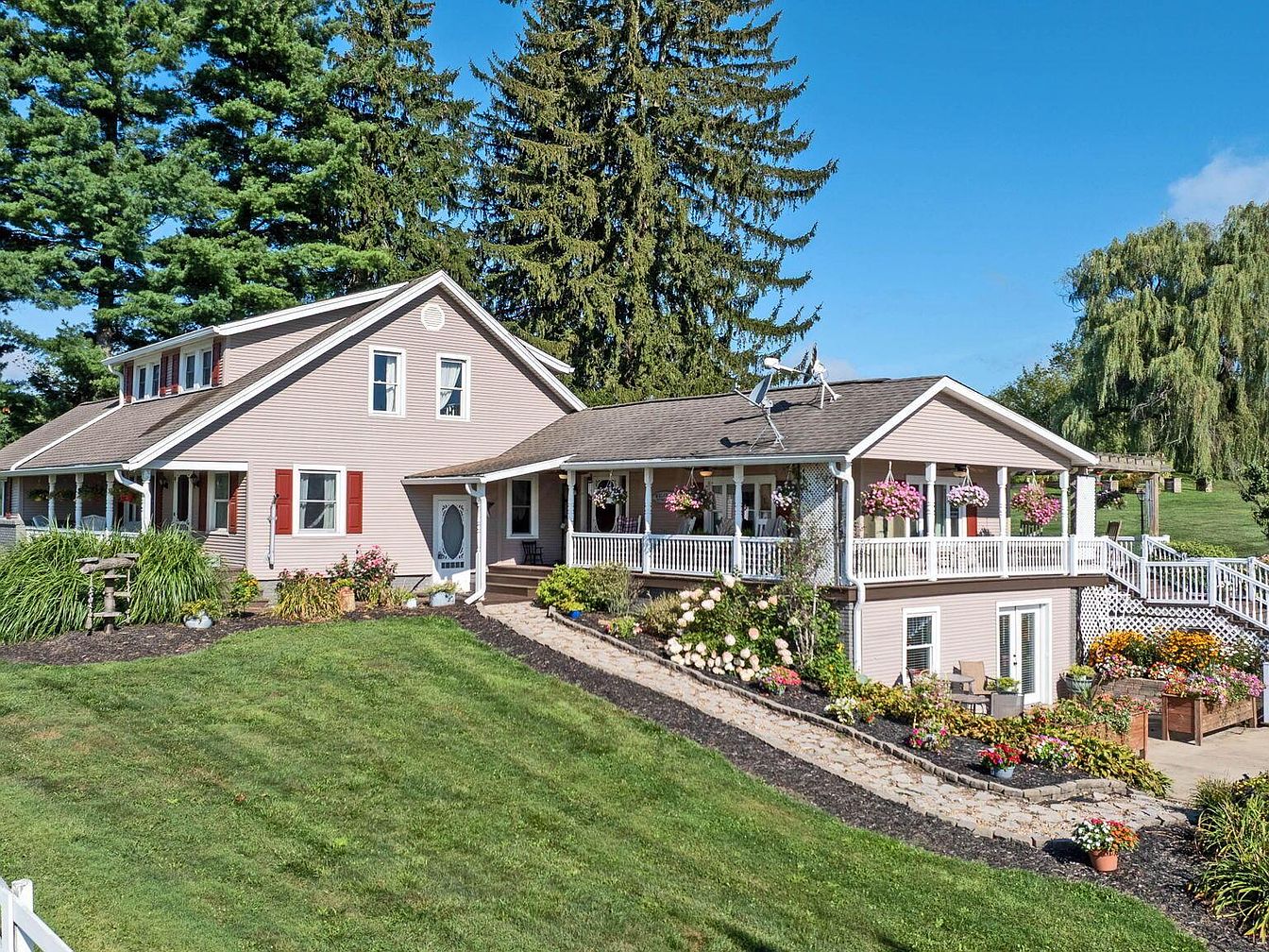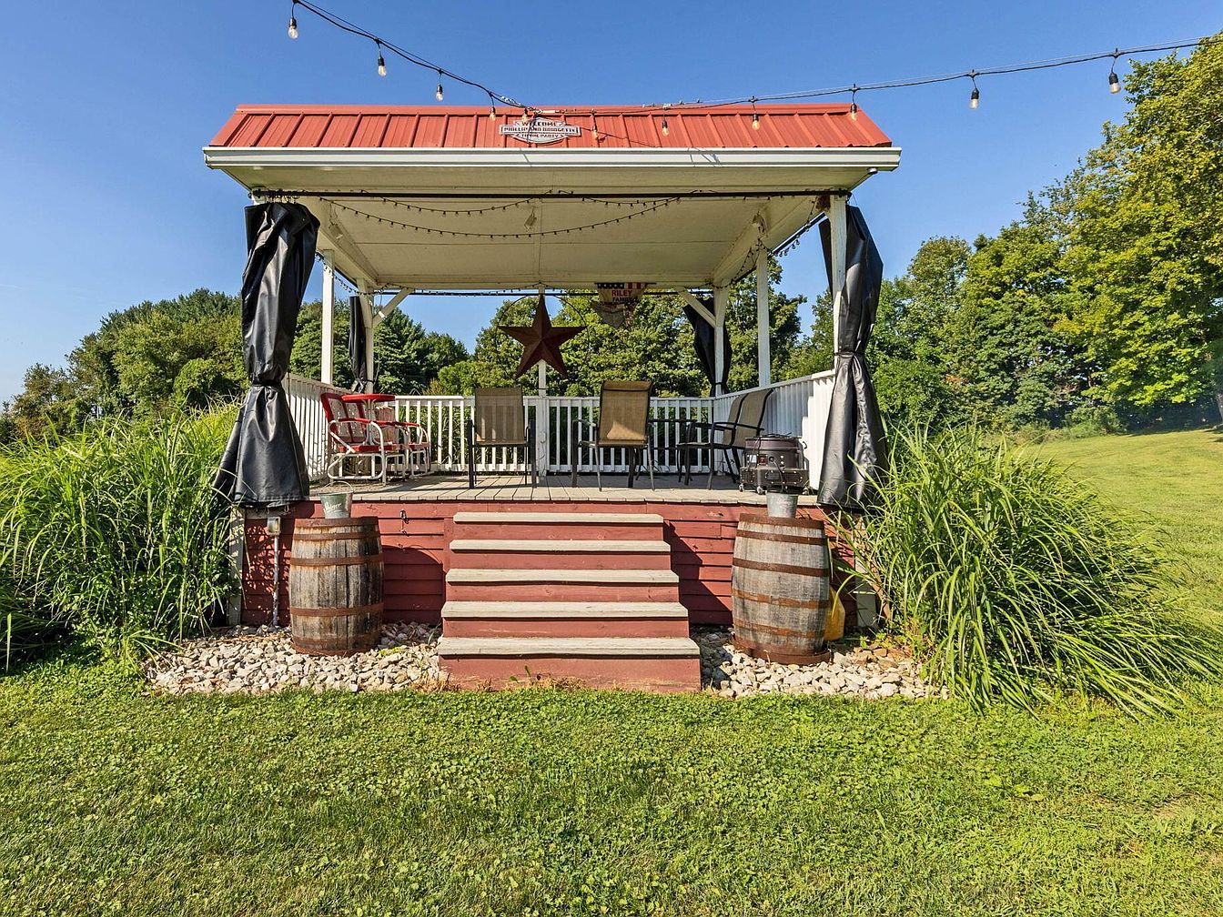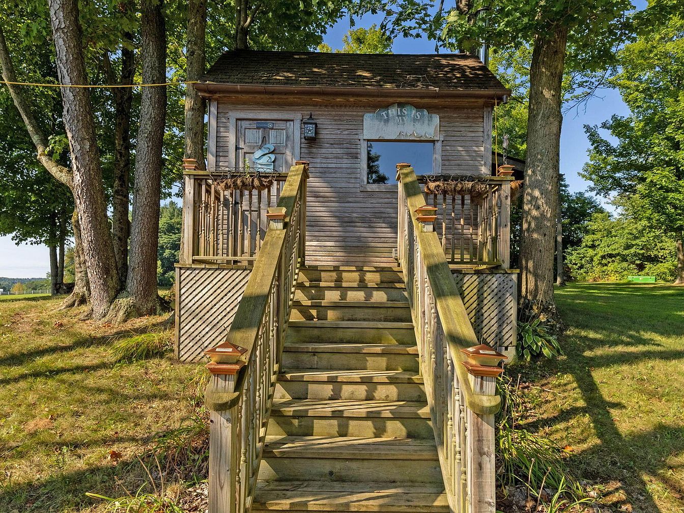 This impressive century home, located in Fredericktown, OH, is steeped in historical charm and versatility, appealing as a resort, event venue, or family compound. Featuring a traditional architectural style with inviting verandas and modern upgrades, the home was originally constructed over 100 years ago and has seen recent renovations to enhance its amenities, including a spiral staircase and updated living spaces. Set on nearly 22 scenic acres, the property consists of four bedrooms, 3.5 baths, expansive leisure, and event facilities, such as a stocked lake, boardwalk, sports courts, indoor arenas, workshop, and cabins. Listed at $1,395,000, the home offers a unique blend of historical significance and modern luxury, making it ideal for hospitality, recreation, or multi-family living.