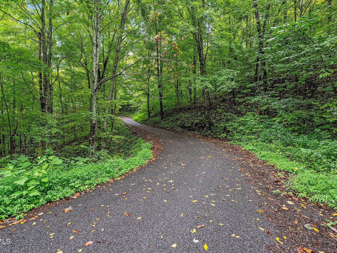 A gently winding asphalt driveway leads through a lush forested area, creating a private and inviting entrance to the home. Tall trees line both sides of the drive, their leafy green canopies filtering sunlight and providing shade and a sense of seclusion. A mix of established greenery and low-lying plants covers the forest floor, lending a fresh and natural feel. This scenic setting is perfect for families, offering ample space for outdoor exploration and safe play. The soft curves of the drive enhance the welcoming atmosphere, making homecomings tranquil and picturesque for children and parents alike.