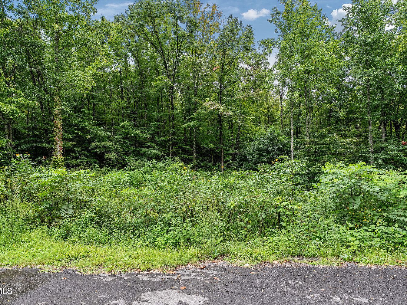 A tranquil backyard area showcases a lush natural landscape filled with tall, mature trees and dense green foliage, offering both privacy and peaceful views. The ground is carpeted with thriving undergrowth and leafy shrubs, creating a vibrant palette of various green shades. There is a paved edge, likely part of a driveway or walkway, which provides easy outdoor access for families. This backyard is ideal for children to explore, play, and experience nature safely within their own property. The surrounding forest atmosphere encourages outdoor gatherings, relaxation, and a connection with nature, making it exceptionally family friendly.