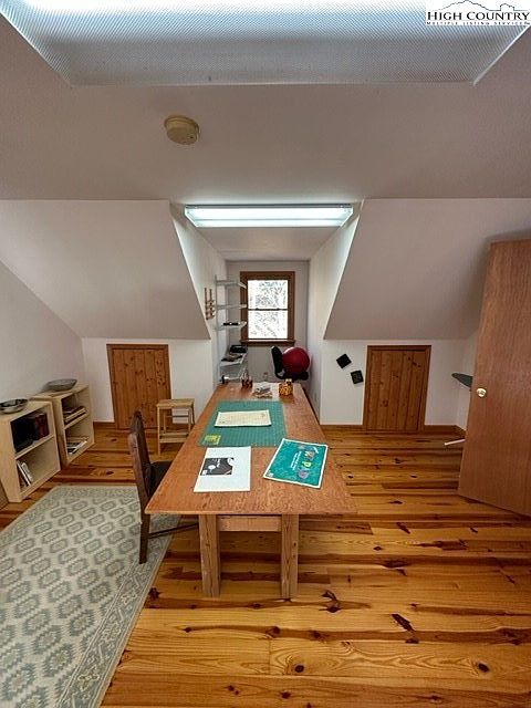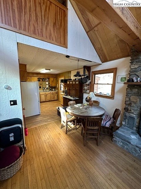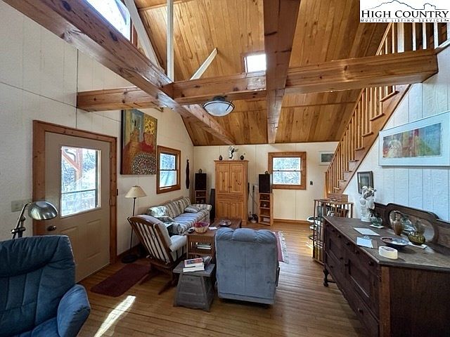 Situated near Independence, VA, this cozy 2/3 bedroom, 2 bath cabin is a perfect fusion of rustic charm and modern comfort, ideal for weekend getaways or full-time living. Built in the early 20th century, the home embodies a classic cabin architectural style enhanced with a stunning stone wood-burning fireplace, vaulted ceilings, and abundant natural light from large windows and skylights. Recent renovations include a new well installation and beautifully landscaped grounds with blueberry bushes and lilies. The property spans a generous plot area, inviting ample storage and outdoor enjoyment, with a listing price of $299,900, and proximity to the Jefferson National Forest, New River, and various recreational activities.
