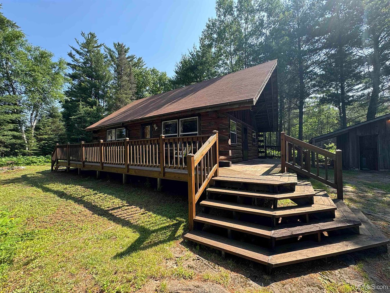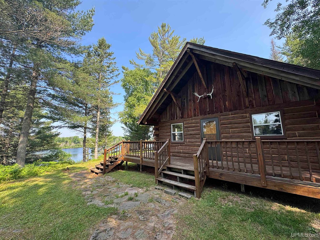Set on over 7.5 secluded, wooded acres with 400 feet of Deer Lake frontage in Crystal Falls, MI, this handcrafted log cabin is an idyllic blend of history and family comfort. The rustic architecture features spruce logs, wide plank pine floors, cedar walls, and hemlock beams, evoking timeless Northwoods charm, while recent 2022 roof upgrades across all buildings provide peace of mind. The home’s wraparound deck and lakeside sauna offer perfect spaces for gatherings and relaxation, making it ideal for family life. Though built off-grid with generator power, the year-round accessible cabin includes two main bedrooms, a loft, and a half bath. Offered at $198,500, this unique property is a rare find for nature lovers and adventure-seeking families.