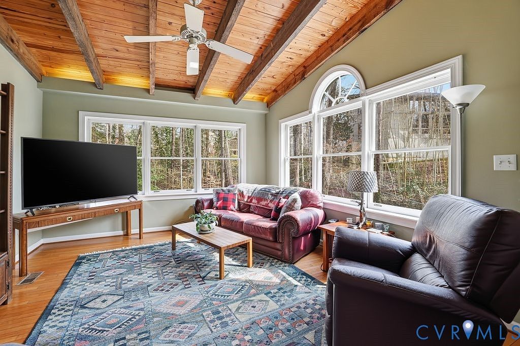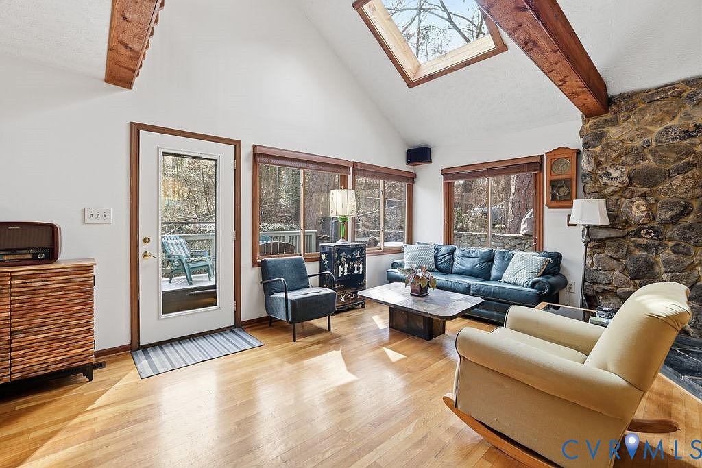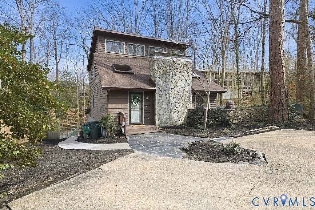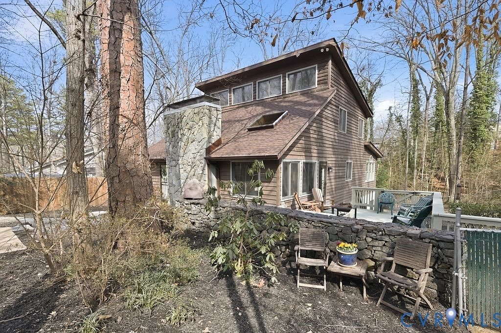 This contemporary home, located just 10 minutes from downtown Richmond, VA, offers a cozy mountain retreat feel. Built in the late 20th century, it features architectural elements such as vaulted ceilings, exposed wood beams, and a stone fireplace. Recently renovated with a new roof and siding in 2024, it boasts 2 bedrooms, 3 full bathrooms, and a bright sunroom overlooking a private yard. The total square footage is not specified, but it includes flexible living spaces, an electric car charging station, and outdoor decks ideal for entertaining. Priced at $660,000, this property reflects a harmonious blend of modern comfort and natural beauty, perfect for both relaxation and convenience.